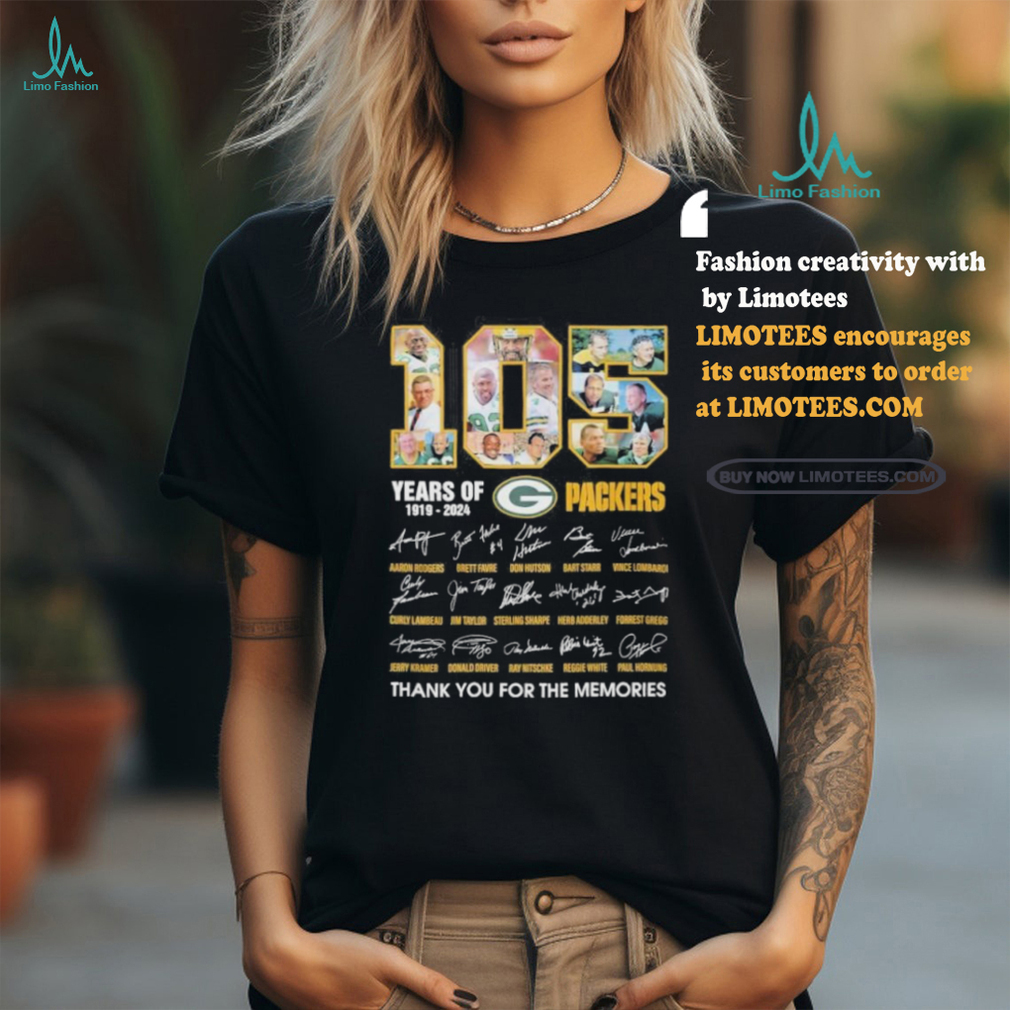 My suggestions are to 105 Years Of Green Bay Packers 1919 2024 Thank You For The Memories Signatures Shirt each girl to make both a written and a face to face apology that includes accepting her responsibility for what happened. Such as, “I’m sorry I cut your hair. It was wrong and I was wrong for doing this. Please forgive me for assaulting you while you were asleep. Then have each girl commit to paying the same amount, the amount it costs to have a nice hair style then put the excess money towards a charity helping children.