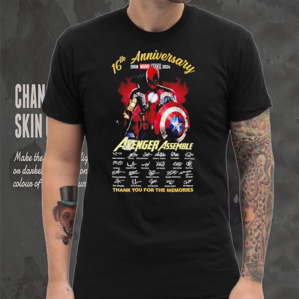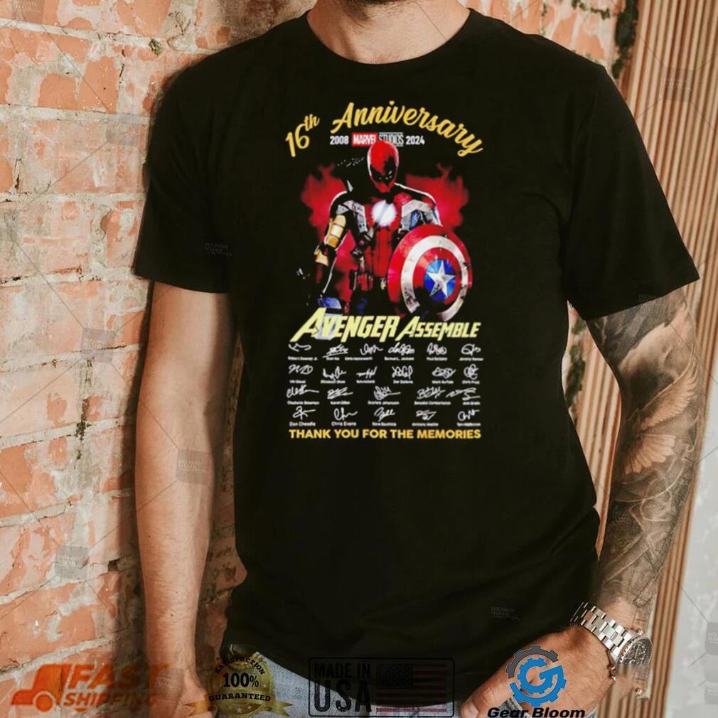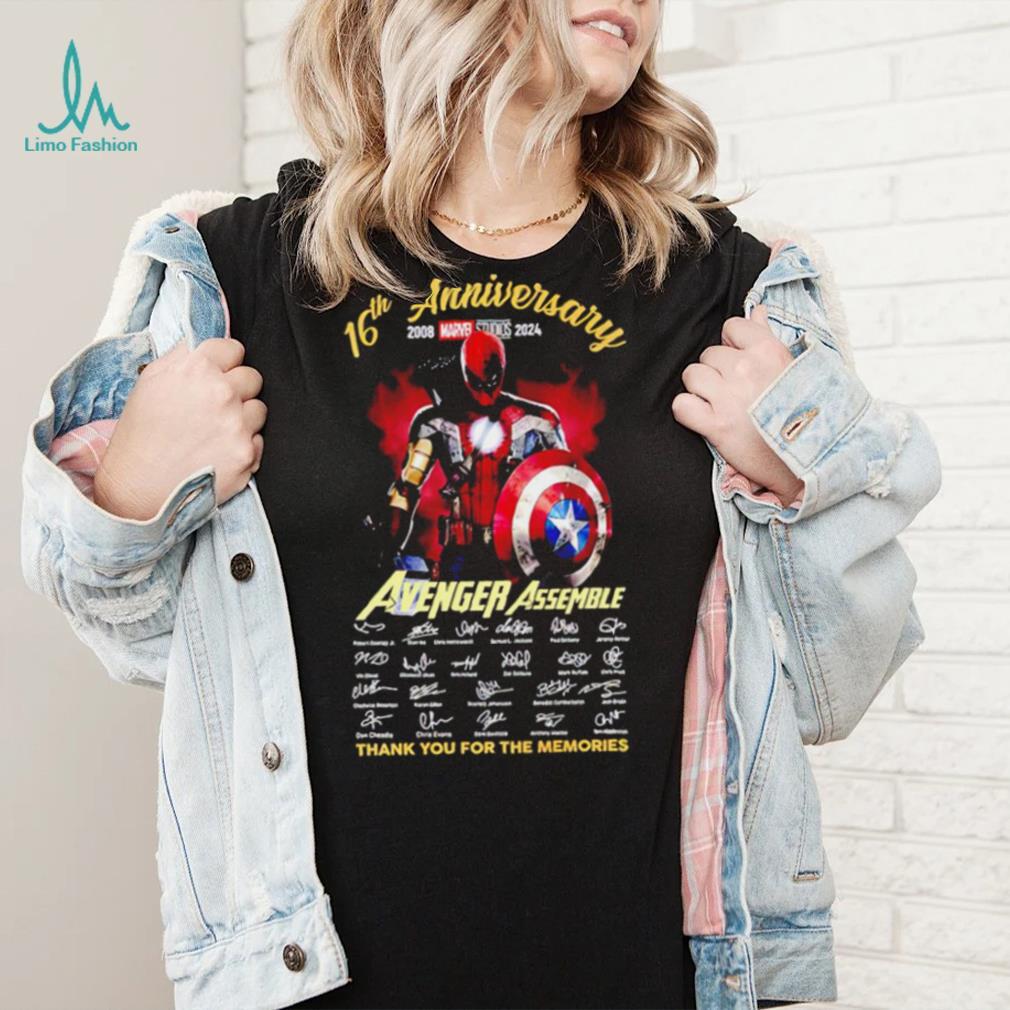16th anniversary 2008 2024 Avenger Assemble signatures thank you for the memories hero mix shirt