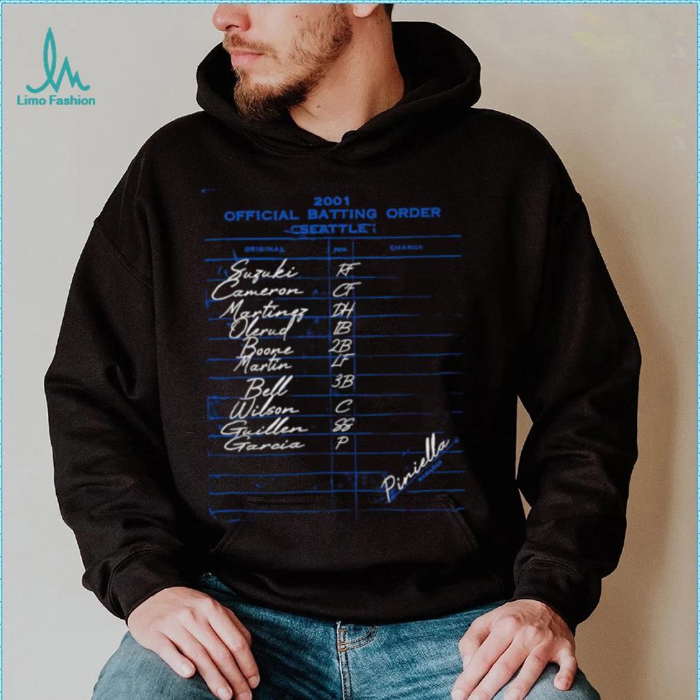 (2001 Official Batting Order Seattle Lineup Piniella manager shirt, hoodie)2001 Official Batting Order Seattle Lineup Piniella manager shirt