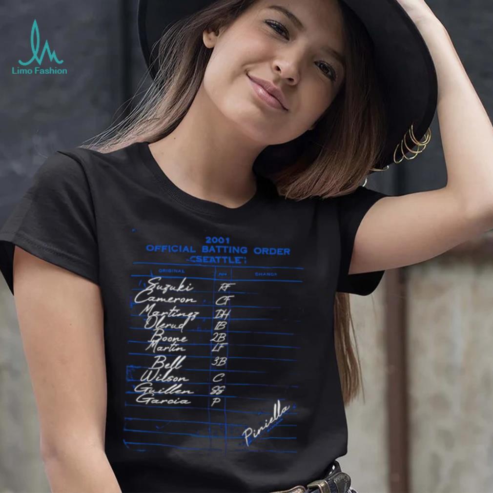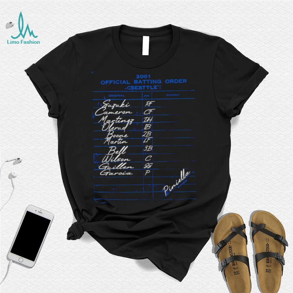 (2001 Official Batting Order Seattle Lineup Piniella manager shirt, guys shirt)