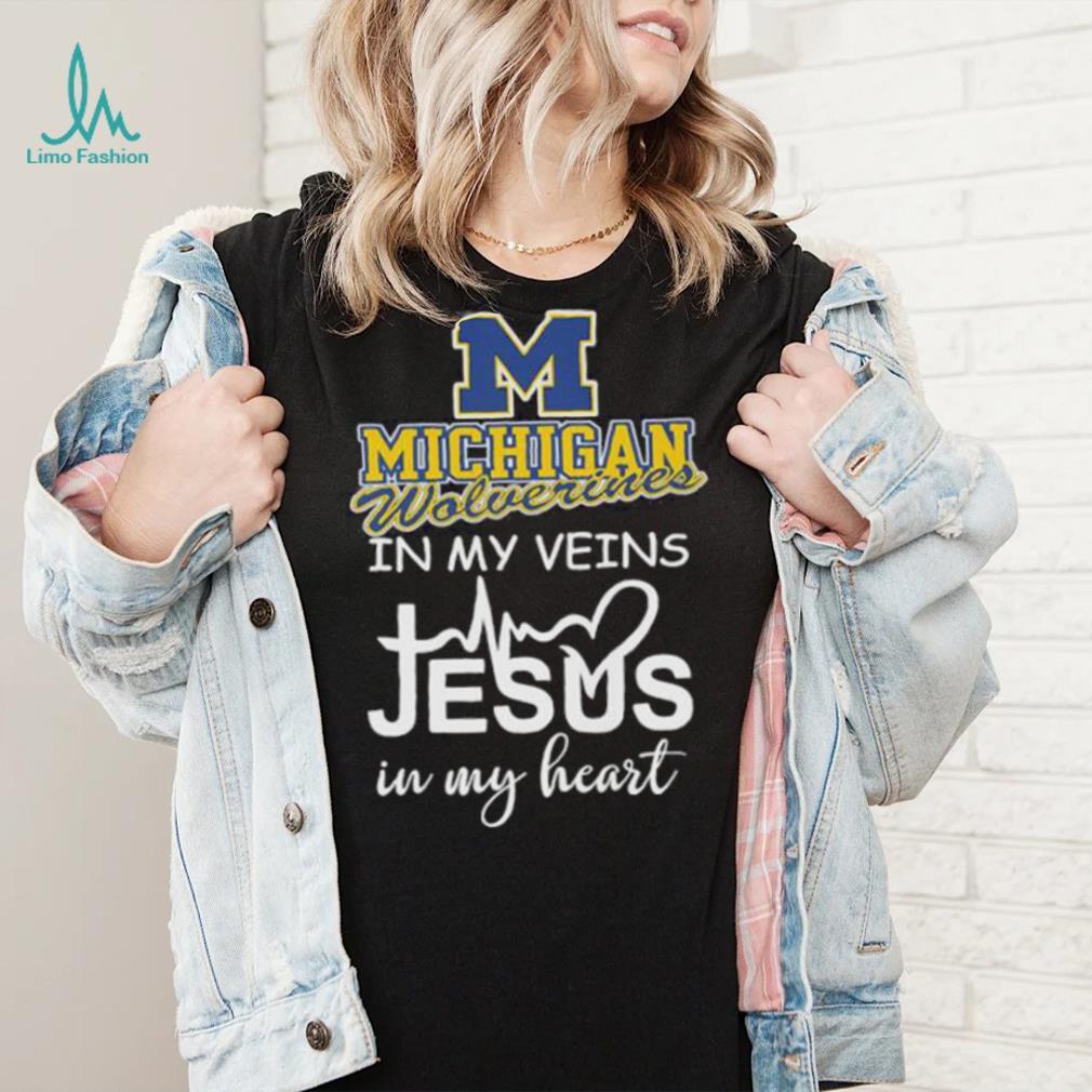 2023 Michigan Wolverines in my veins Jesus in my heart shirt