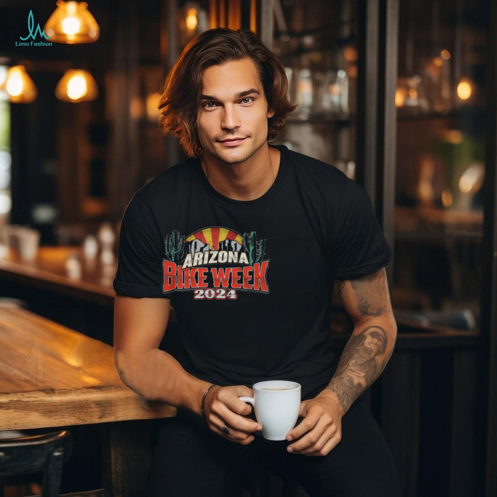 I went through some rougher times. She 2024 Arizona Bike Week Official Logo Tee Shirt with me from hostel to hostel, to shabby room, and finally a tiny apartment. Carrying around my life in a backpack and my faithful kitten Chispa in my purse. She would just hop in and silently stay put until we’d reach our destination. The cat must have sensed what we were arguing about. He entered the kitchen, picked up the rug in the kitchen and put it over his box! I have never seen a cat use such logic. This also implied that he creates tools to get his desired effect.
