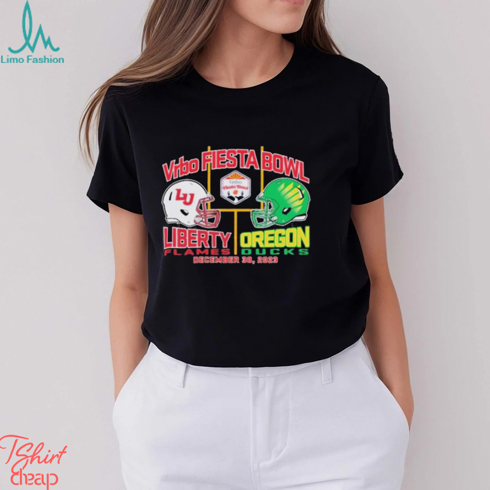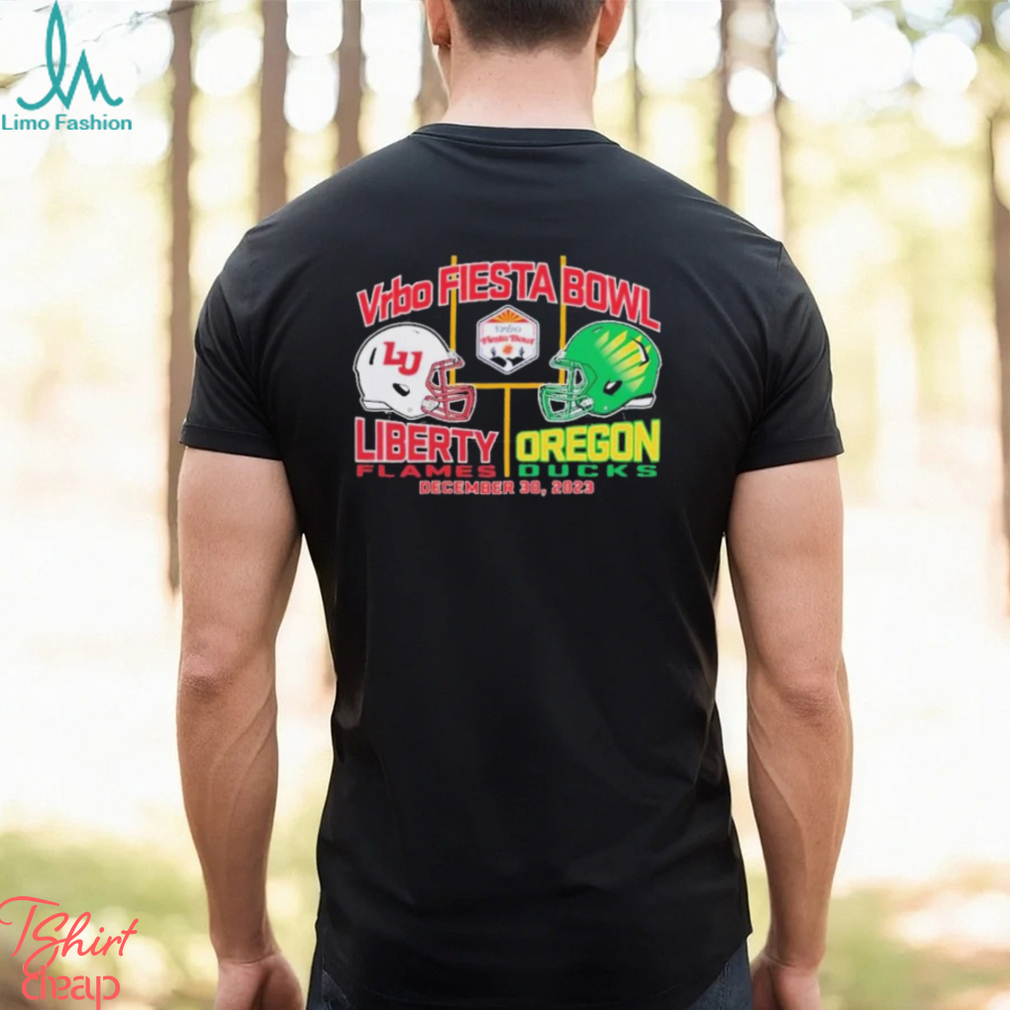 2024 Fiesta Bowl Liberty Flames vs. Oregon Ducks Dueling Helmet Shirt