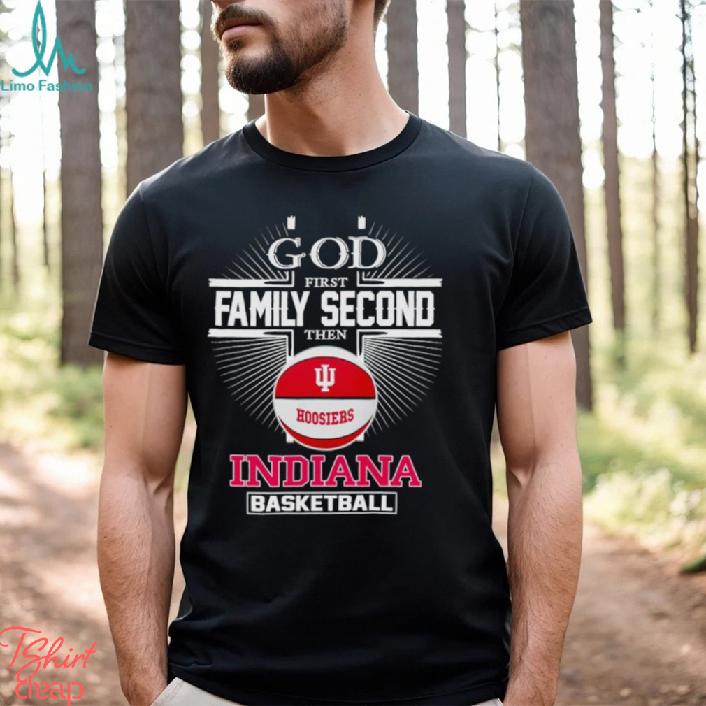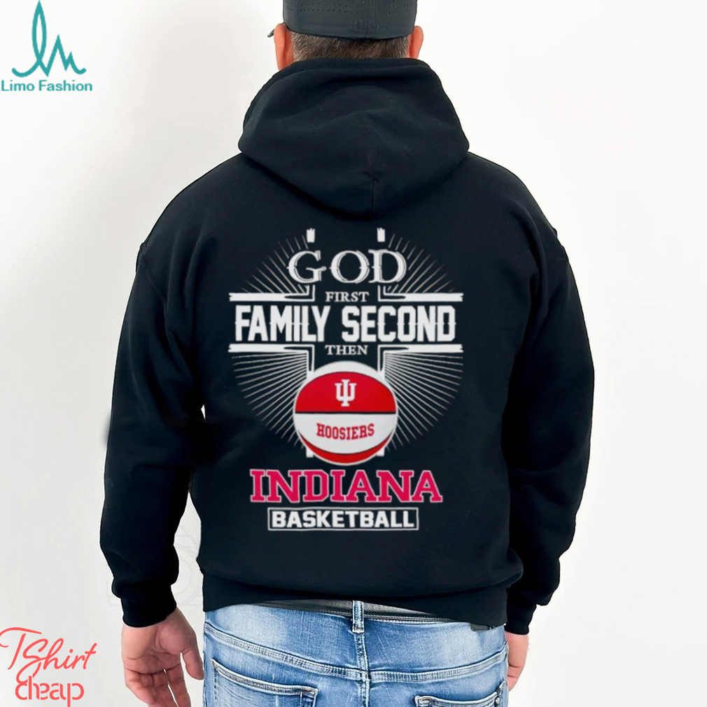()2024 God first family second then Indiana basketball shirt hoodie, tank top, sweater and long sleeve t-shirt