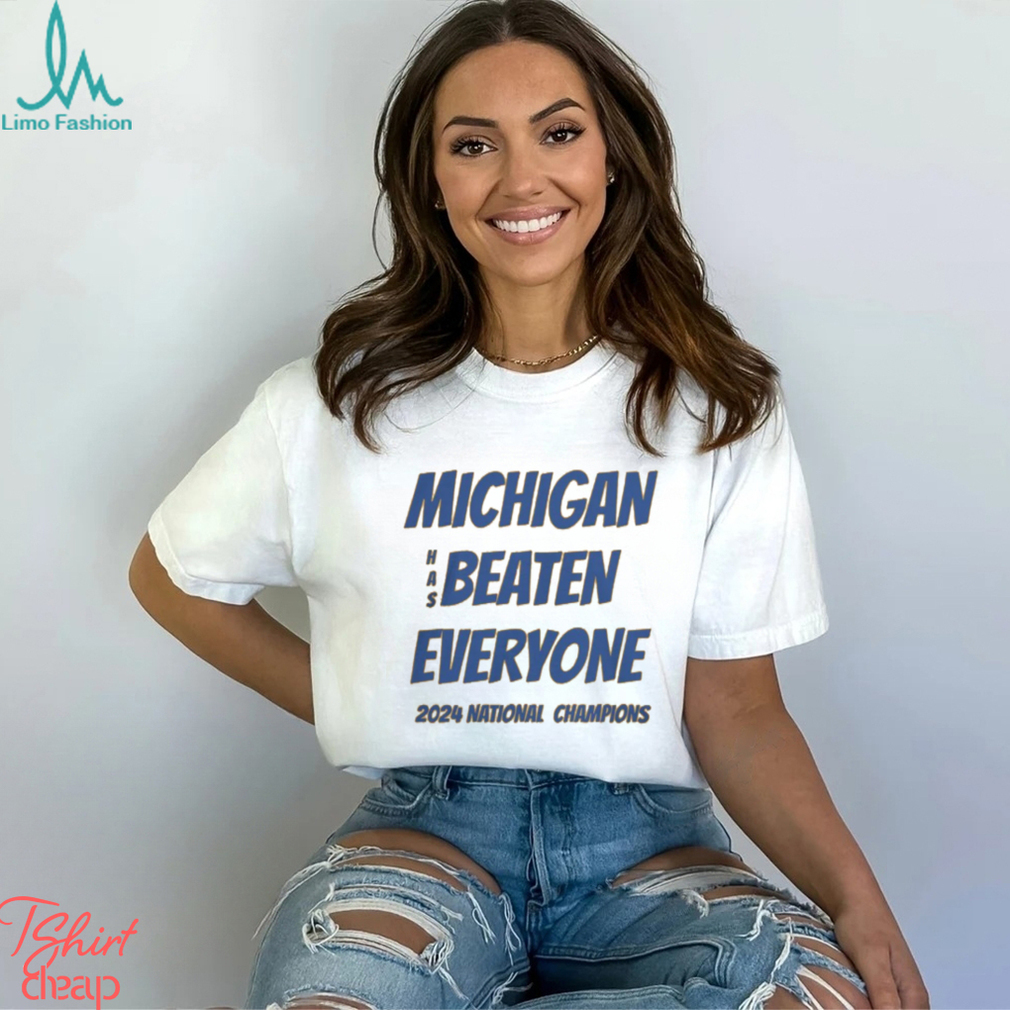 There is surely something is wrong with the 2024 Michigan National Champions Merch Michigan Has Beaten Everyone Shirt of those who raise this kind of questions at all! Being politically and ideologically opposed does not mean an inveterate social and religious vengefulness. What was envisaged there is a certain kind of ideological framework for the country based on its age-old ethicality and prevent India from losing its identity in the flood waters of the anarchical and hegemony-anchored Western Culture. It is not because secular forces fight against ISIS or Al-Qaeda that secularists systematically despise Islam or its followers. Nor is it because India is engaged in a protracted conflict with Pakistan that India despises Pakistanis wholesale. Do understand that India has a very unique cultural ethos. All so, that the Western social ethos does only encouraging baser instincts of people and subtly acquires power over them in the name of controlling the consciously unleashed waywardness in the name of law.