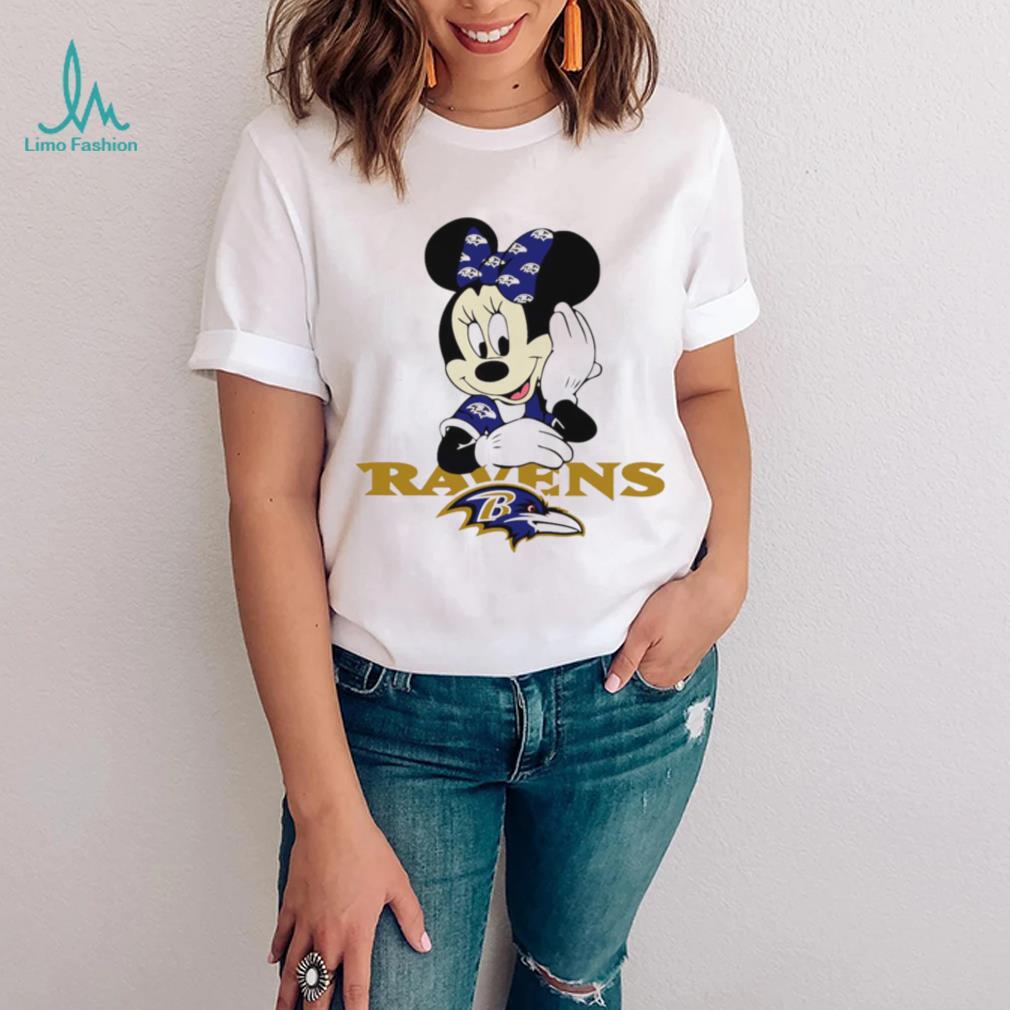 The 2024 NFL Championship Game Minnie Mouse Baltimore Ravens football logo shirt to when Beethoven first realizes his deafness and he explains that Theresa would not love him were she to know. He is then shown Theresa’s reaction to his unexplained absence and he realizes that his deafness is the cause of all his problems. Fate explains that if she cures his deafness his music will suffer, as the Muses would not be heard as easily through the everyday sound. He thus withdraws his request. Beethoven is then shown that Theresa would have loved him forever and he becomes very sorrowful. But Fate then offers visions of the countless musicians of the future who would be influenced by Beethoven’s works. As one last, ultimate vision he is allowed to improvise with the musicians of the past and future who were inspired by him. Realizing that removing the hardships from his life would destroy his music, Beethoven informs Fate that he will not change any part of his life.