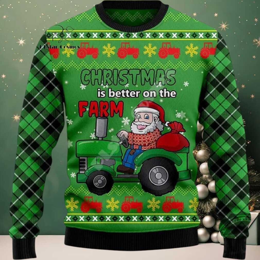 2025 Chrismas Is Better On The Farm Santa Ugly Christmas Sweater
