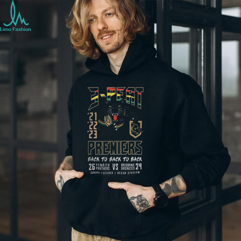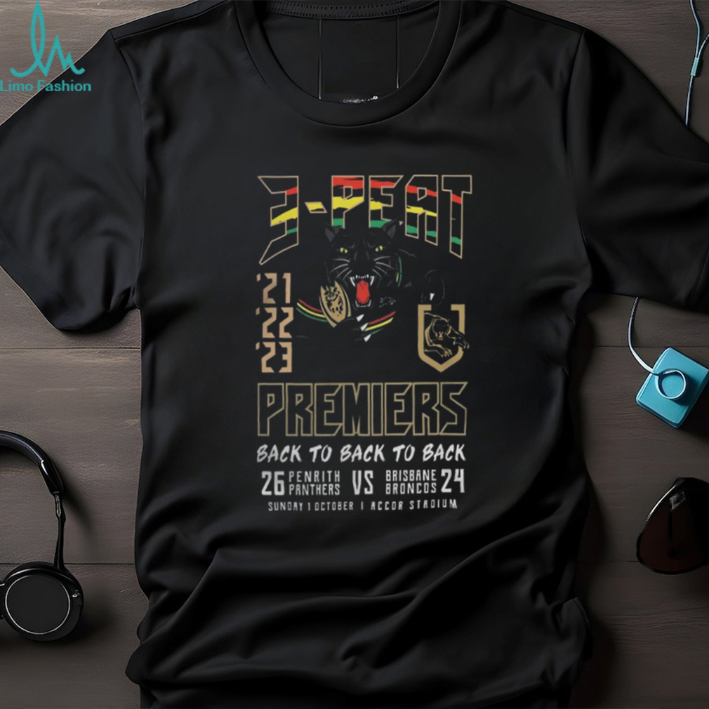 ()3 Peat Premiers Back to Back to back Penrith Panthers vs Brisbane Broncos Shirt, Hoodie, Sweater, Vneck, Unisex and T-shirt