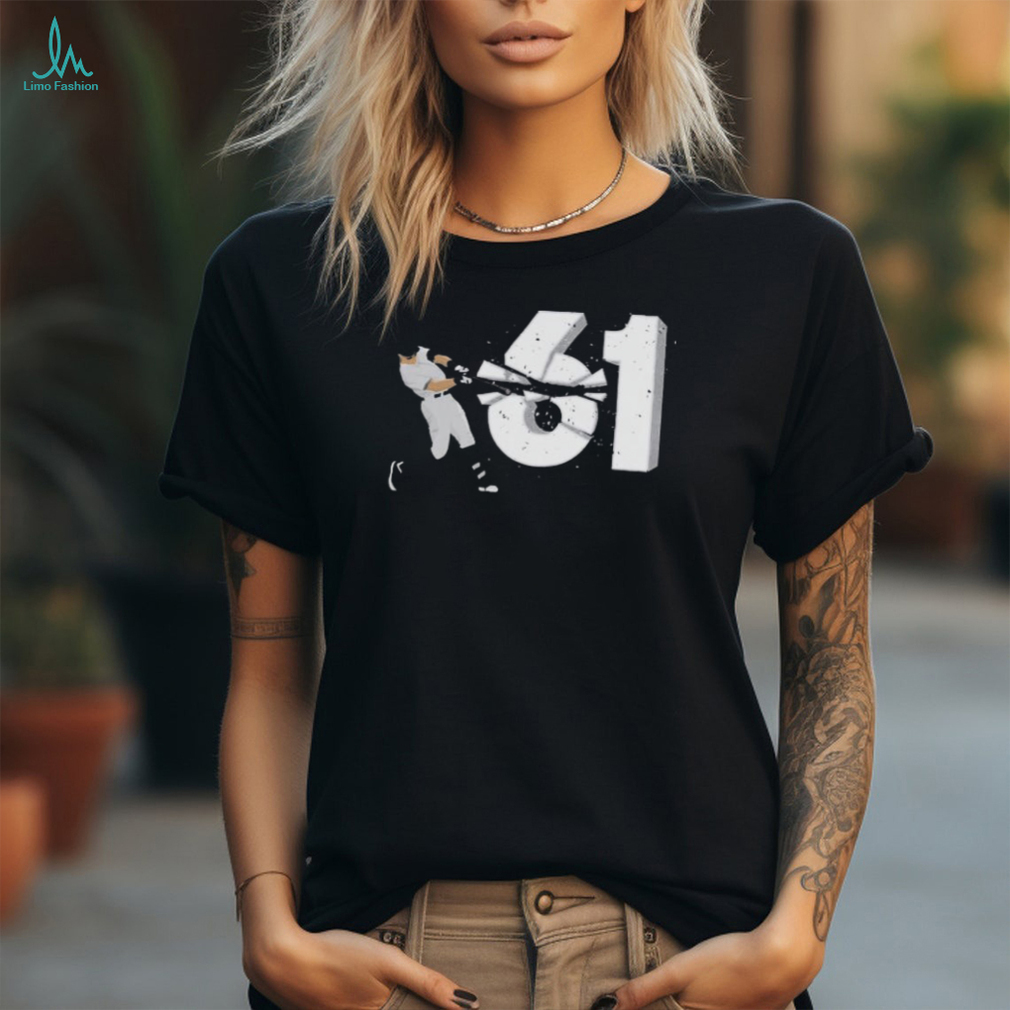 He is very Aaron Judge 61 Smash 2024 Shirt . He is very in-tune to my emotions. When I am sad, I swear he knows, and will lick my tears away and get very quiet. He loves to go bye-bye in the car. He absolutely loves fast food drive throughs especially Arby’s roast beef . I am sure he will be my only dog. I will never have another pet as long as I have him. I can’t imagine my life without him, but it will happen some day.