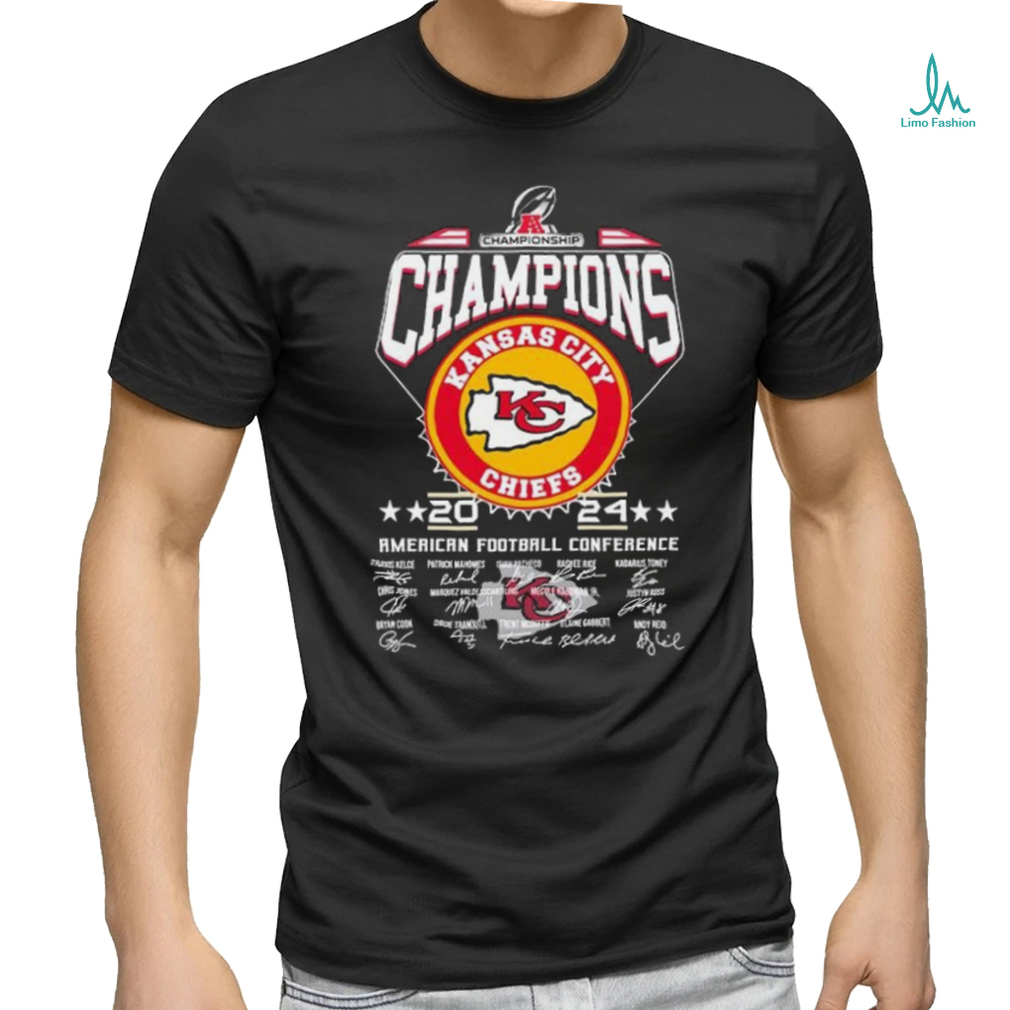 AFC Championship American Football Conference Champions 2024 Kansas City Chiefs Signatures Shirt. Categories of this T-shirt is teejeep, AFC Championship American Football Conference Champions 2024 Kansas City Chiefs Signatures Shirt from Dadyshirt ✓ Unique designs ✓ Large assortment ✓ Comfortable ✓ High-quality ✓ Easy to care for ✓ Available in a range of colours and styles for men, women ✓ Shop now ✓
