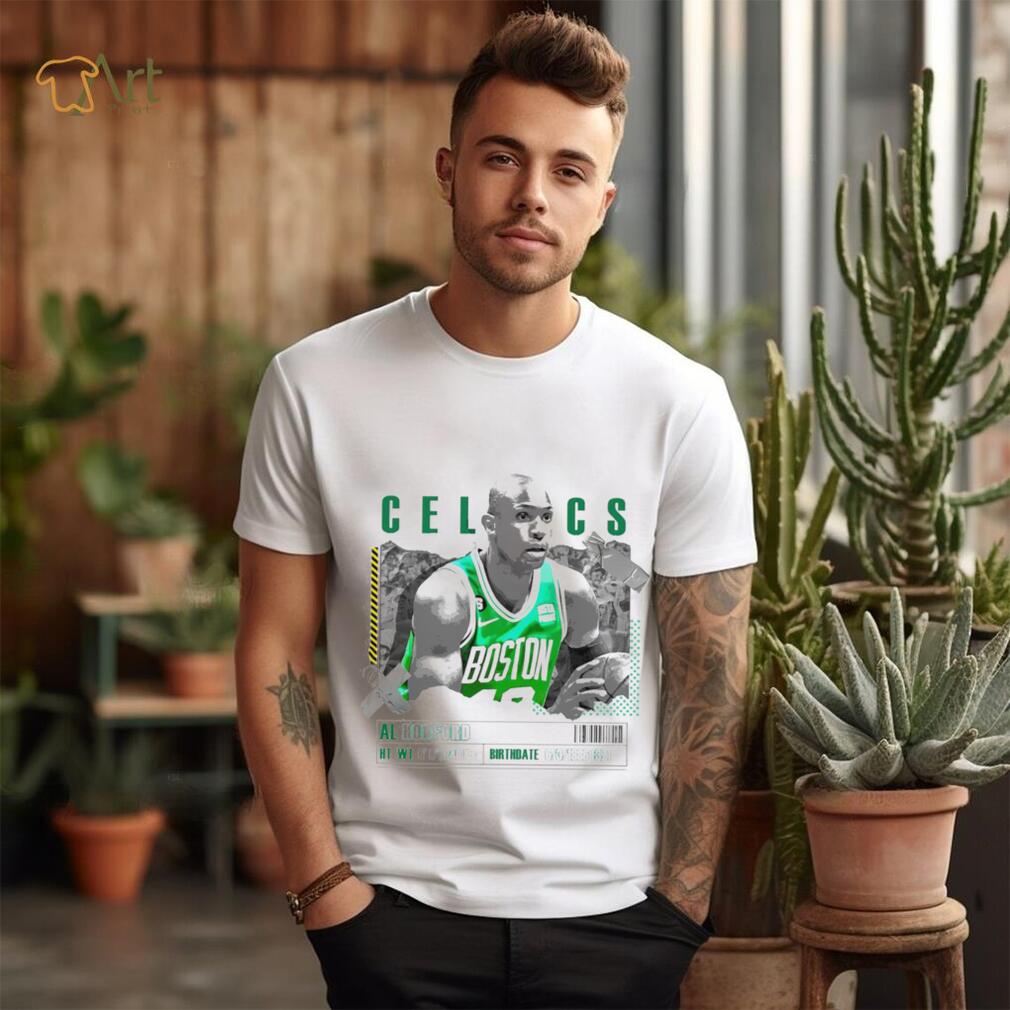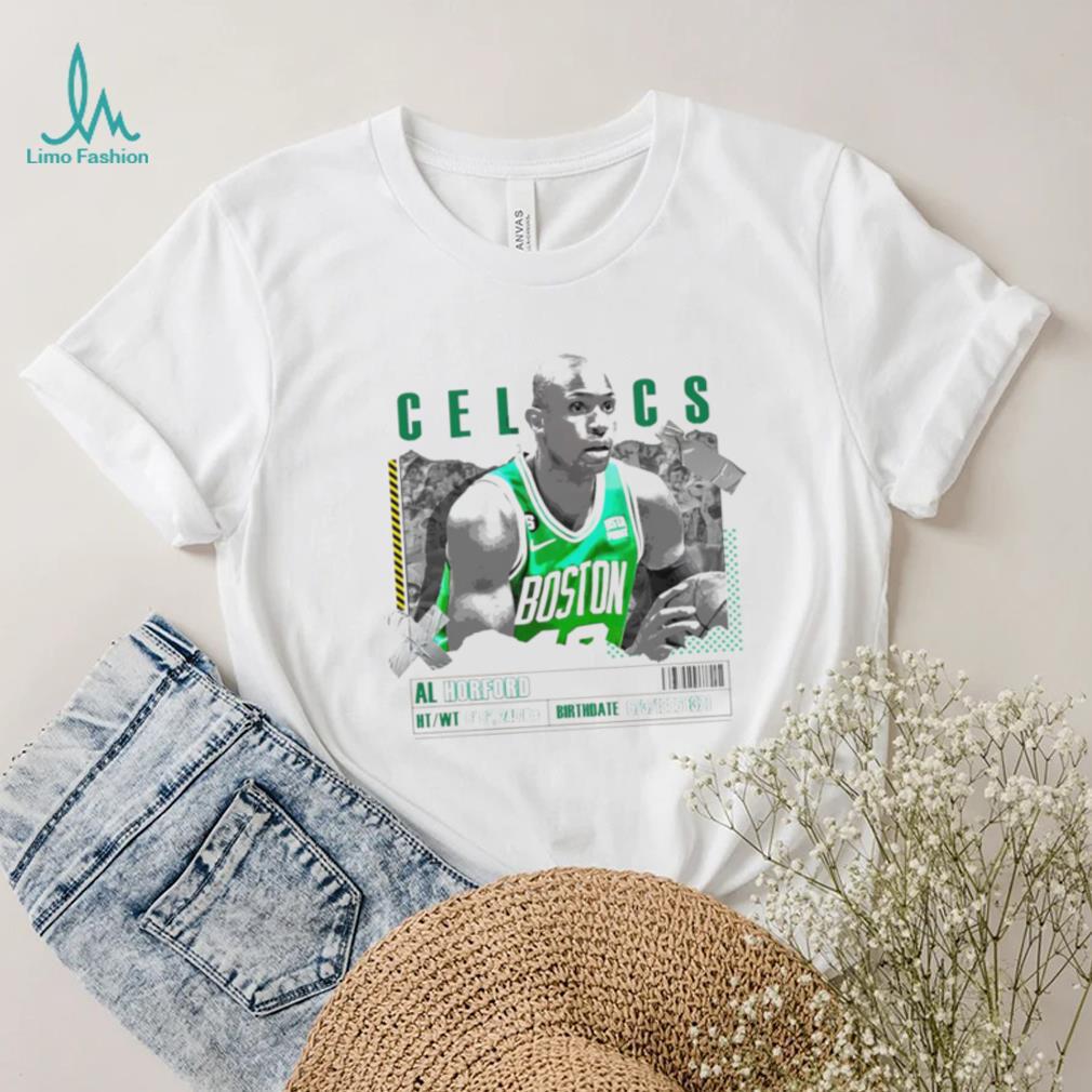 I’ll mention my other cat, Al Horford number 42 Boston Celtics basketball player paper poster shirt , who I’m beginning to think is the smartest of the seven cats I’ve owned. I raised him from the age of 3 weeks, after he was abandoned on my back patio by his mother. His favorite thing is to chase after wadded up pieces of cardboard made from 1/3 of an empty toilet tissue roll. I knew he would chase them the first time I threw one, but I wasn’t expecting him to fetch them back. He does it every time until he gets tired of it, which hardly ever happens, because I get tired of it or distracted from it before he does.