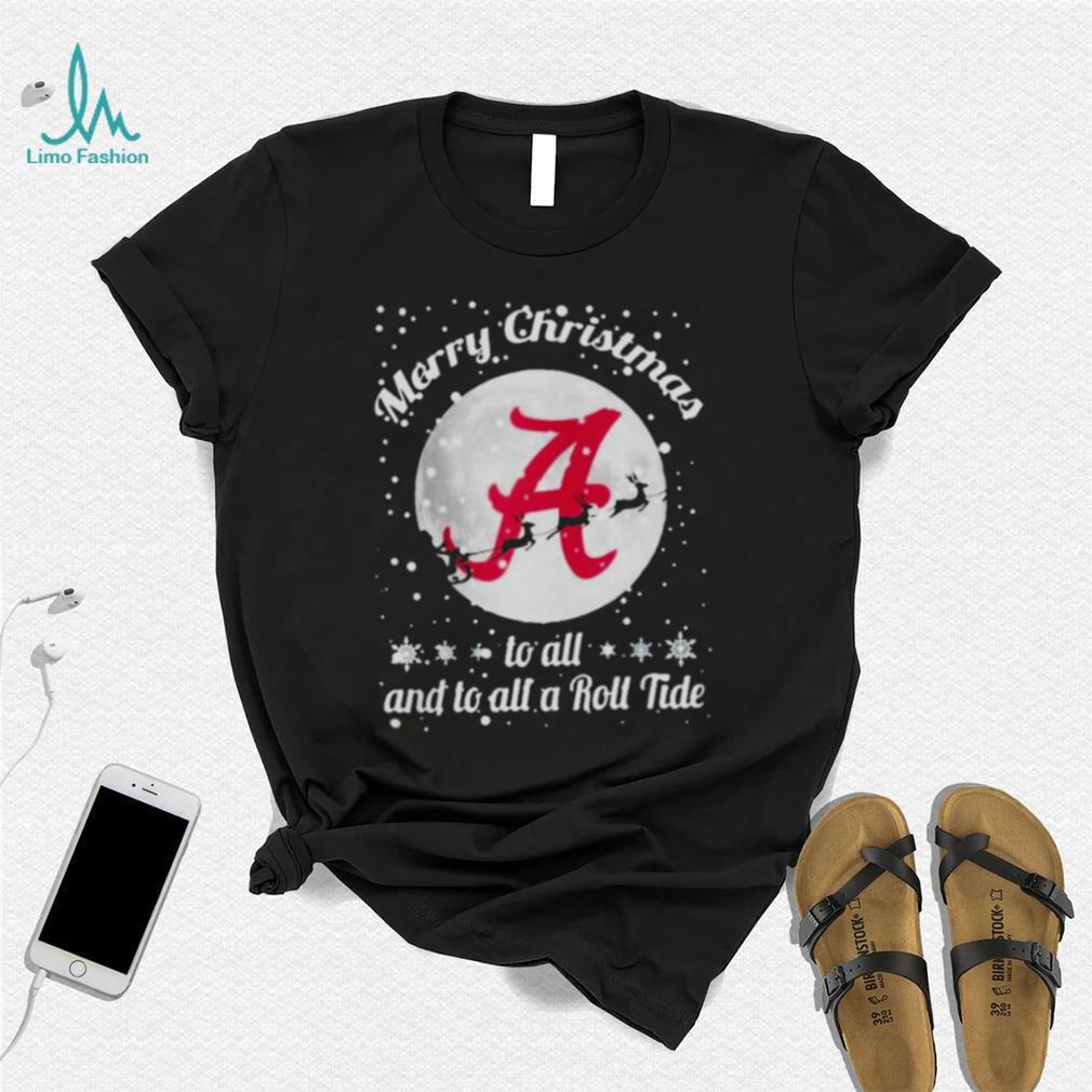 So not only did they actually have their homes both have Hanukkah and Christmas decorations, but these very different families they happily and joyously hosted celebrations for Alabama Crimson Tide Merry Christmas To All And To All A Roll Tide T Shirt. What’s key here though is that what is meant by “Christmas.” Many people associate this holiday as a traditional Christian-themed, religious holiday with various Christian themes, decor, etc.. But many other people associate the holiday with snowmen, winter weather, reindeer, hot chocolate, egg nog (often with rum), various evergreen trees (artificial or real) festooned with glittering ornaments, pretty gift boxes under the tree, etc., or a secular (with Pagan roots in Saturnalia) winter holiday just a few days after the annual winter solstice. In fact, it seems to be a holiday that many non-Christians and even non-theists celebrate.