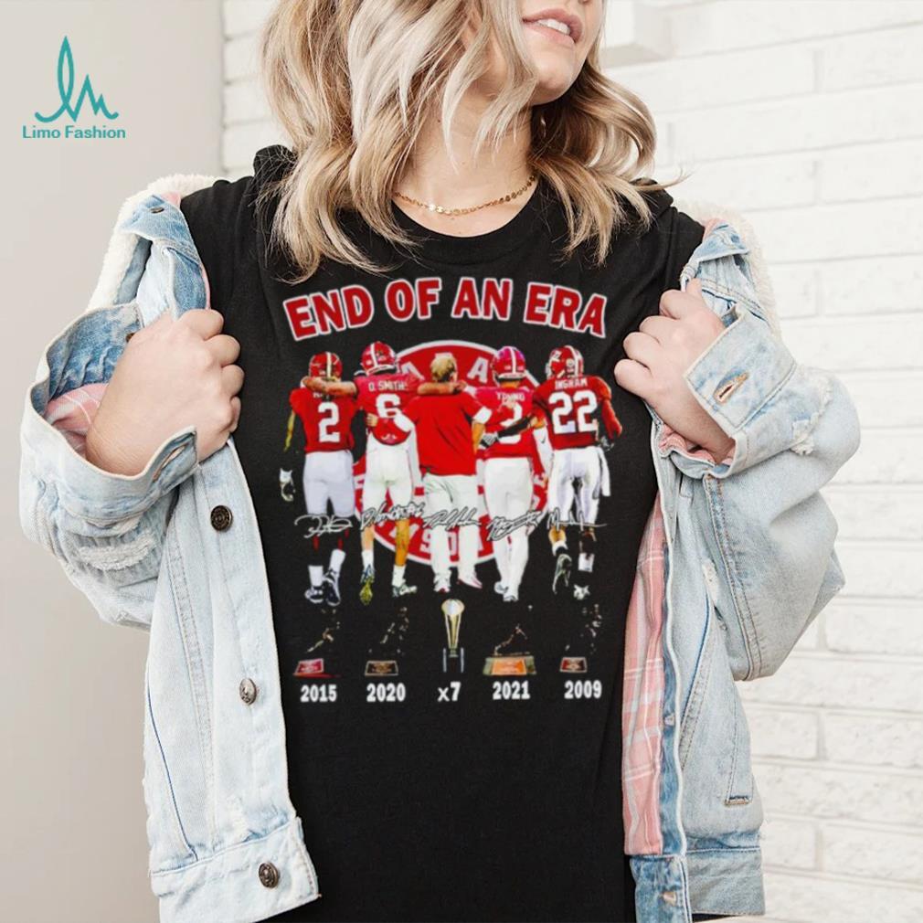 That being said, I agree, Alabama Crimson Tide Nick Saban end of an era signatures shirt a picture of your daughter and find a before picture. Then I would go in person to speak to each child’s parents. As hard as it may be, try not to speak in anger and accusations. All that does is shut people down. Presenting facts and issuing a specific call to action will go much further. Go to the hosting parent and explain what happened, how it impacted your daughter and what you think is an appropriate response.