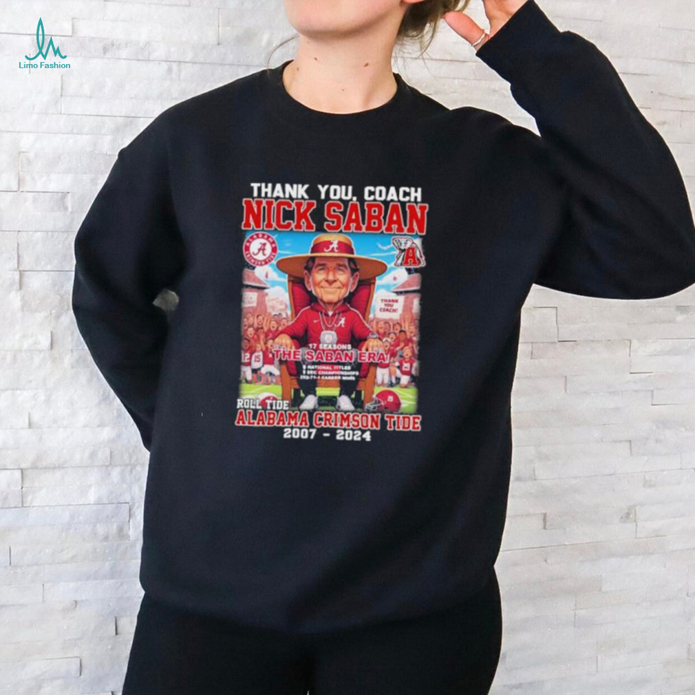 Rugby League may be the easier game to play in terms of learning how, but it has a Alabama Crimson Tide Thank You Nick Saban Lead Us 17 Seasons 2007 2024 shirt cardiovascular fitness requirement compared to the NFL — and higher than that of Rugby Union. An NFL game of 60 minutes takes about 3 hours to play, with multiple personel changes. Many NFL players are simply not fit enough to play either Rugby code, where the minimum fitness required is to play 40 minutes straight and a further 20 minutes after a 15 minute half time break. League is especially demanding on fitness because the ball is in play for a higher percentage of that time. From what I’ve seen, a lot of NFL players would require a year of physical conditioning to play rugby to any decent level.