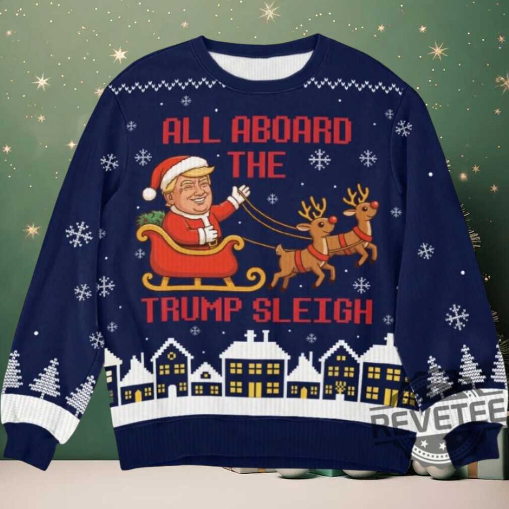 All Aboard The Trump Sleigh Ugly Christmas Sweater