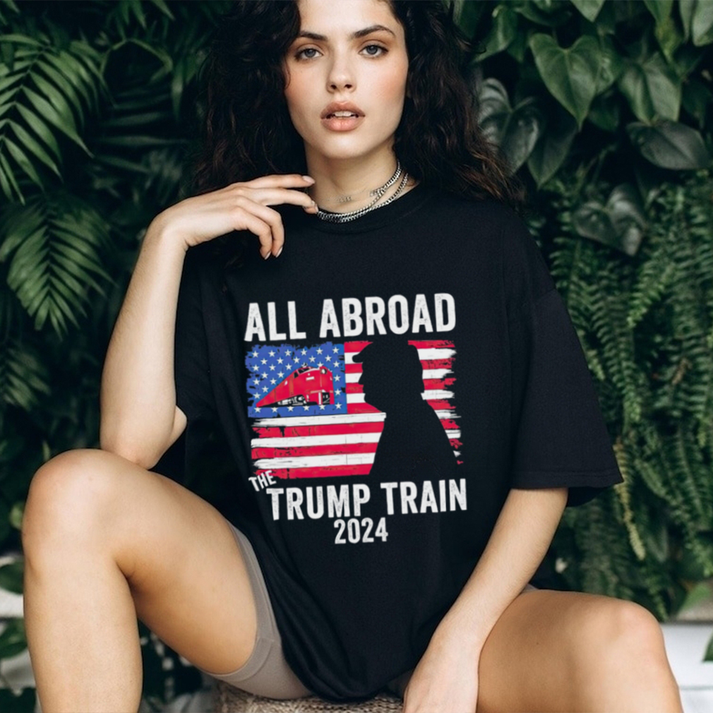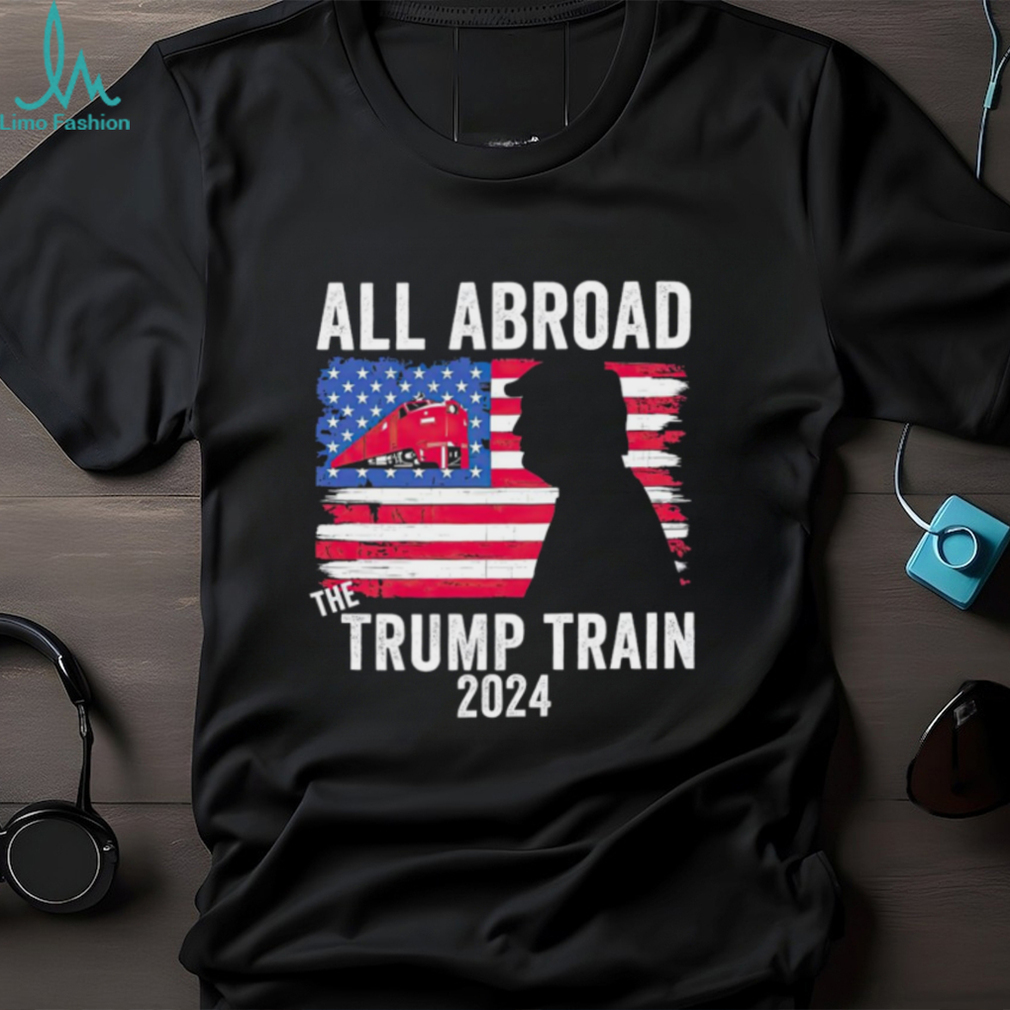 ()All aboard the Trump train 2024 USA flag T shirt, Hoodie, Sweater, Vneck, Unisex and T-shirt