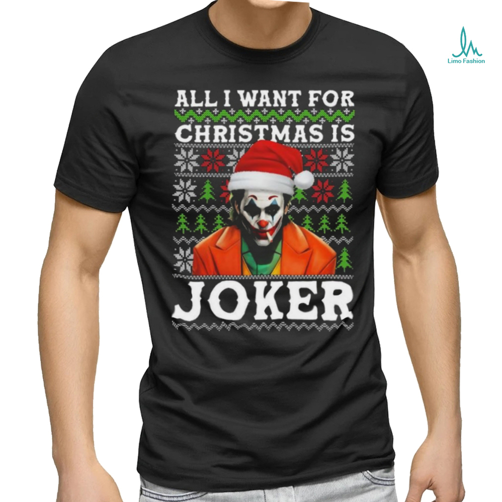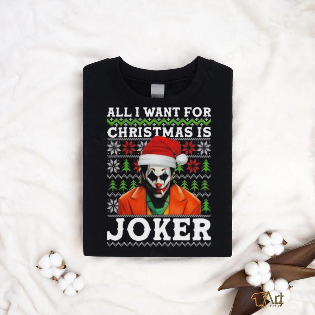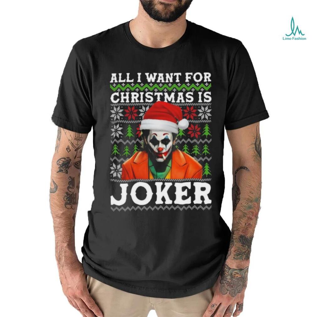 All I Want For Christmas Is Joker Ugly shirt1 is a must-have for any Funny who loves all things teejeep. These shirts typically feature popular Trenđing Shirt characters, quotes, or logos, and come in a range of styles and colors to suit any taste. Some designs may even feature the dad’s favorite Trending or characters, making them a personalized and thoughtful gift.