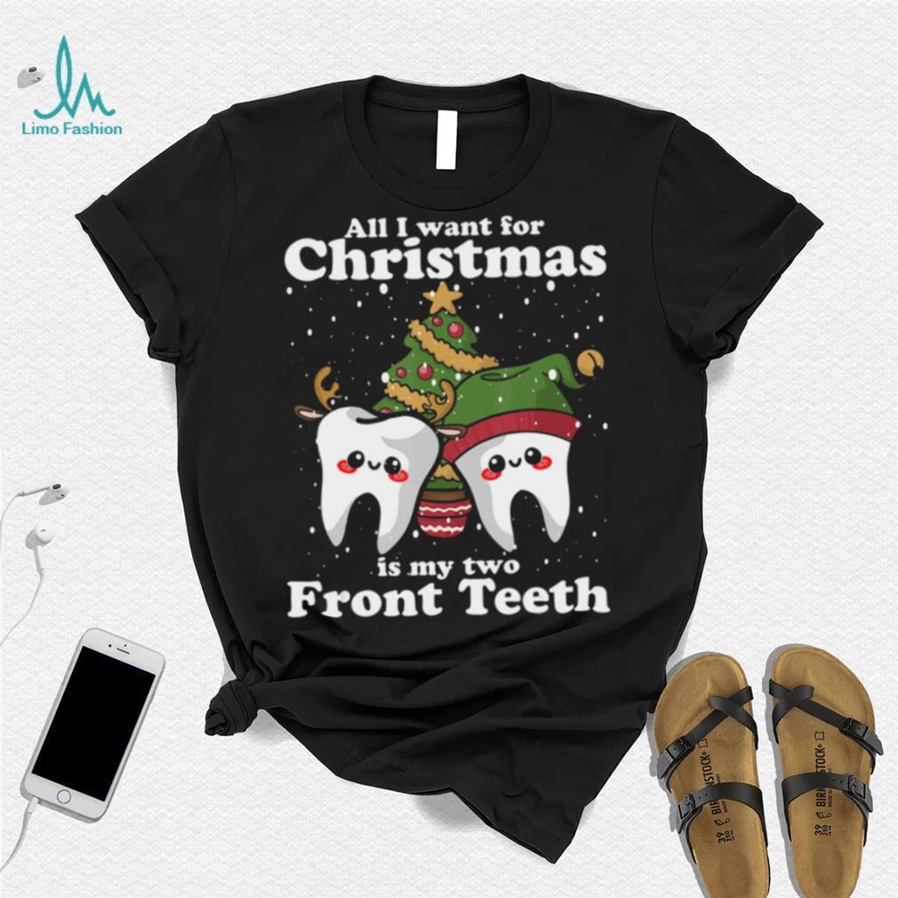 All I want for Christmas is My Two Front Teeth Funny Dentist Tshirt