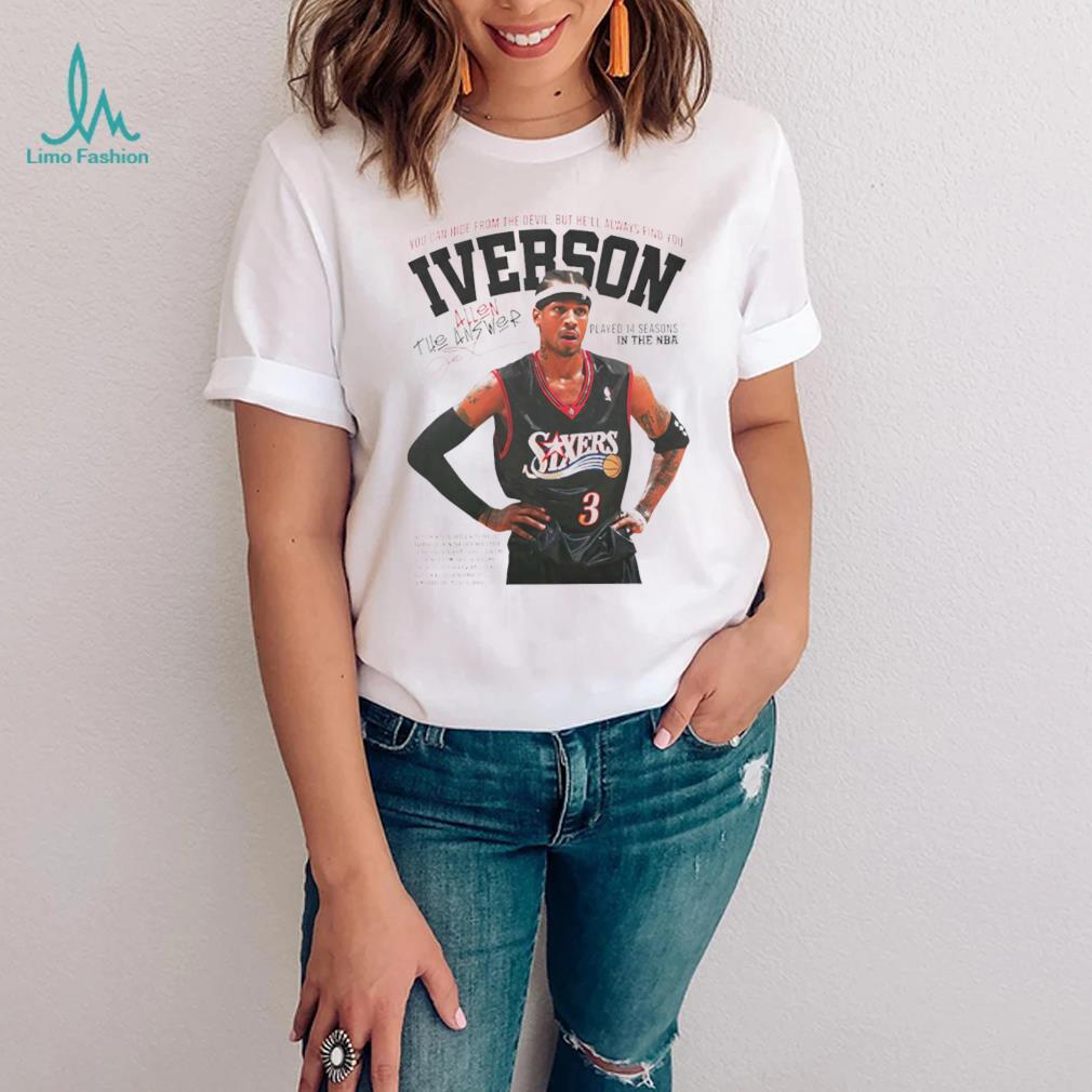 ()Allen Iverson Philadelphia 76ers basketball you can hide from the devil but he’ll always find you signature information retro shirt