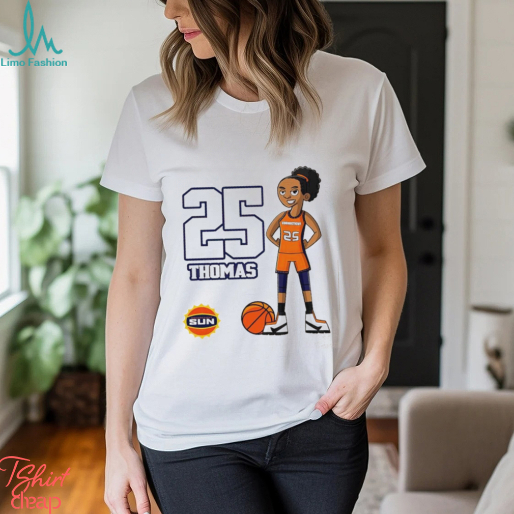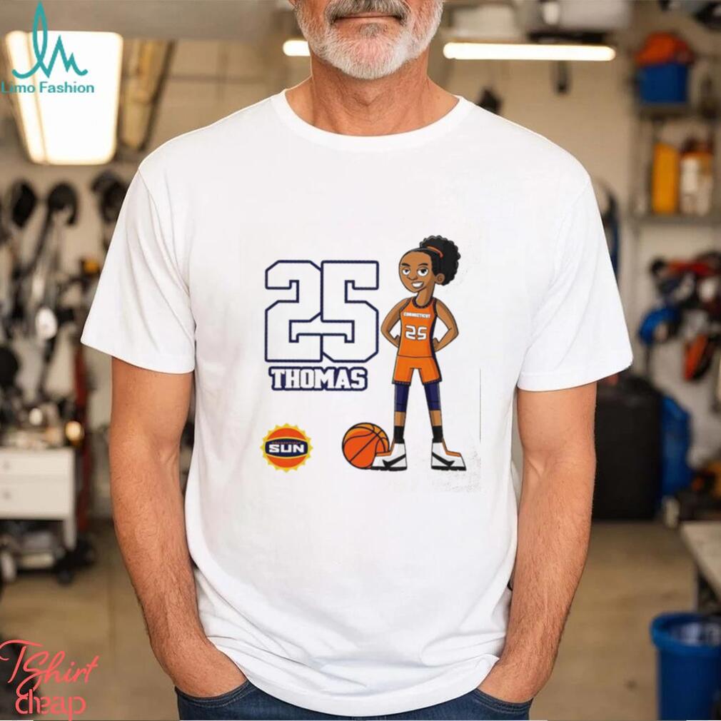 Durga Puja has always been a Alyssa Thomas Connecticut Sun 25 cartoon shirt of womanhood in Bengal; more so now, as the State has its first woman Chief Minister in Mamata Banerjee. Being a symbol of `woman power` herself, Ms Banerjee has received nearly 3,500 invitations to inaugurate Durga Puja marquees from across West Bengal. This shows that she is a true leader of the masses. All her supporters across Bengal want to share the festive spirit and celebrations with her. People want her to share their joy. She is a mass leader and yet she is like everybody`s neighbour. Demonstrating her will to protect her people yet again, the CM has decided that even though all government offices will be closed the government will stop functioning, she will have the same work load and may be more, during the festive days. The festive season will not be a time for respite for the other leaders or ministers of her government as well. Mamata Banerjee has already instructed them to return to their constituencies instead of travelling out of Kolkata so that they can establish better public relations. She has also asked them to use the pandals as platforms to connect more with the people.