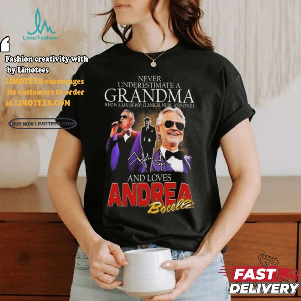 Andrea Bocelli Never Underestimate A Grandpa Who Loves Bocelli Signature T shirt1 is a must-have for any Funny who loves all things teejeep. These shirts typically feature popular Trenđing Shirt characters, quotes, or logos, and come in a range of styles and colors to suit any taste. Some designs may even feature the dad’s favorite Trending or characters, making them a personalized and thoughtful gift.