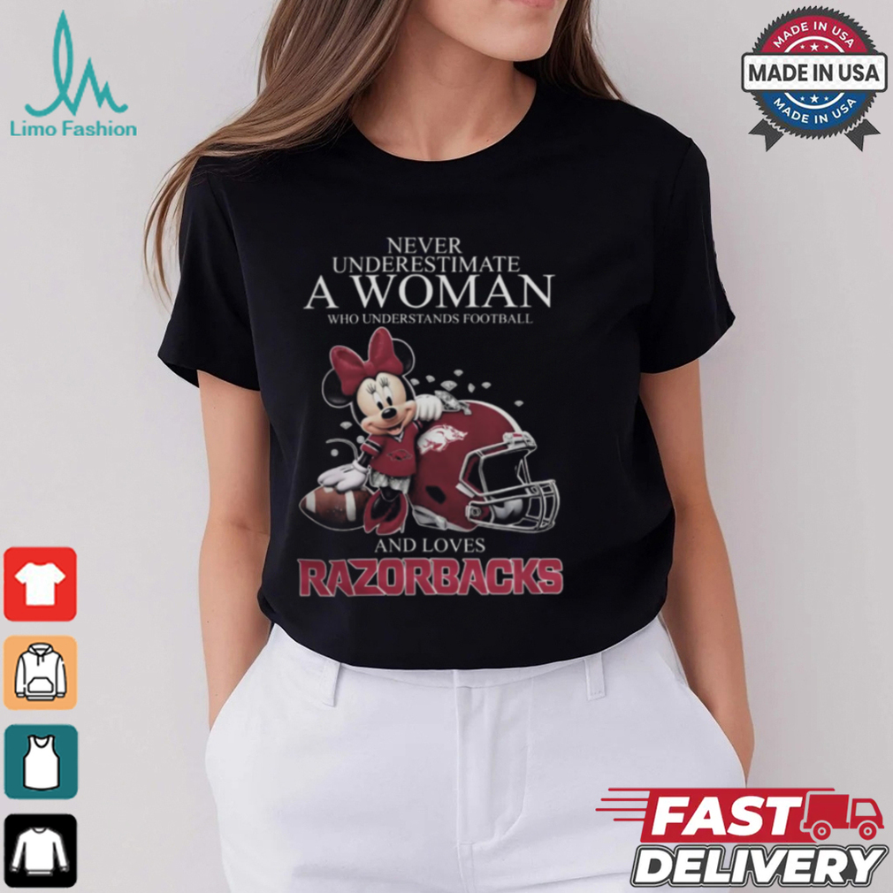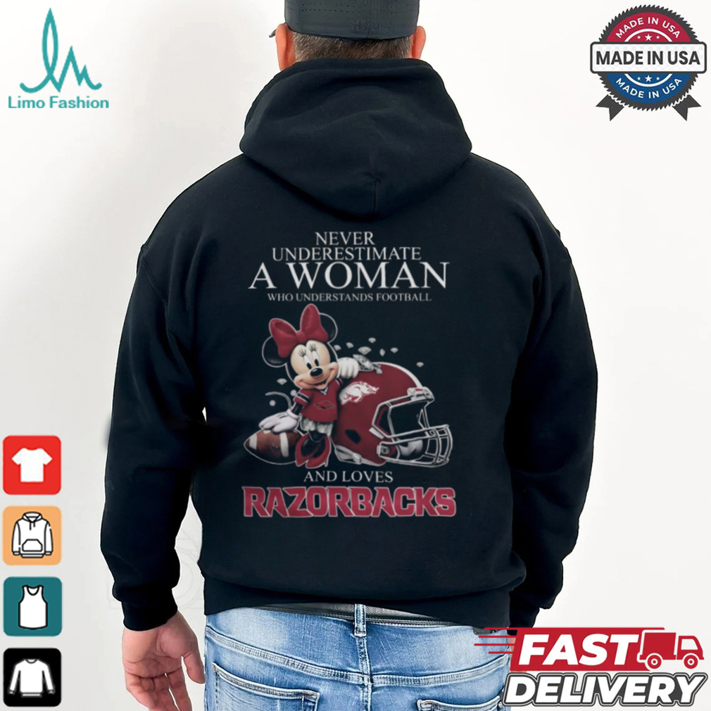 Arkansas Razorbacks x Minnie Mouse Never Underestimate A Woman Who Understands Football And Loves Shirt hoodie, tank top, sweater and long sleeve t-shirt