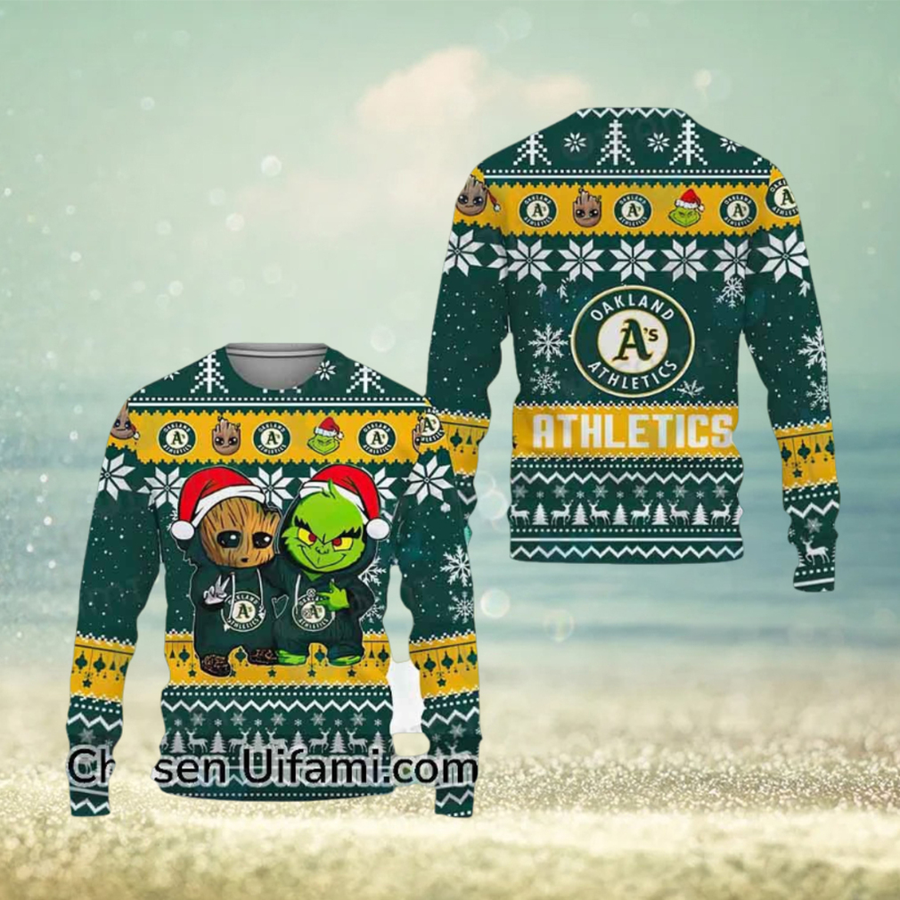 ()A’S Ugly Sweater Surprising Baby Groot Grinch Oakland Athletics Gift,