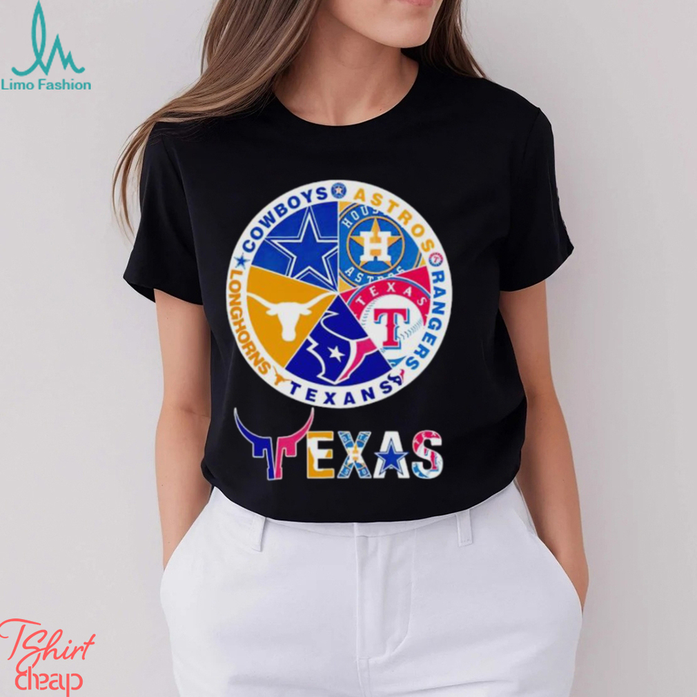 Astros Rangers Texans Longhorns Cowboys Texas logo shirt