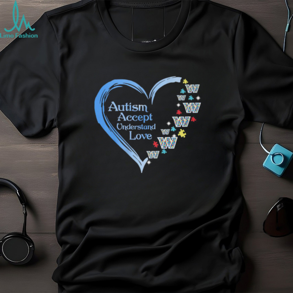 The Autism Accept Understand Love Washington Commanders Shirt to when Beethoven first realizes his deafness and he explains that Theresa would not love him were she to know. He is then shown Theresa’s reaction to his unexplained absence and he realizes that his deafness is the cause of all his problems. Fate explains that if she cures his deafness his music will suffer, as the Muses would not be heard as easily through the everyday sound. He thus withdraws his request. Beethoven is then shown that Theresa would have loved him forever and he becomes very sorrowful. But Fate then offers visions of the countless musicians of the future who would be influenced by Beethoven’s works. As one last, ultimate vision he is allowed to improvise with the musicians of the past and future who were inspired by him. Realizing that removing the hardships from his life would destroy his music, Beethoven informs Fate that he will not change any part of his life.