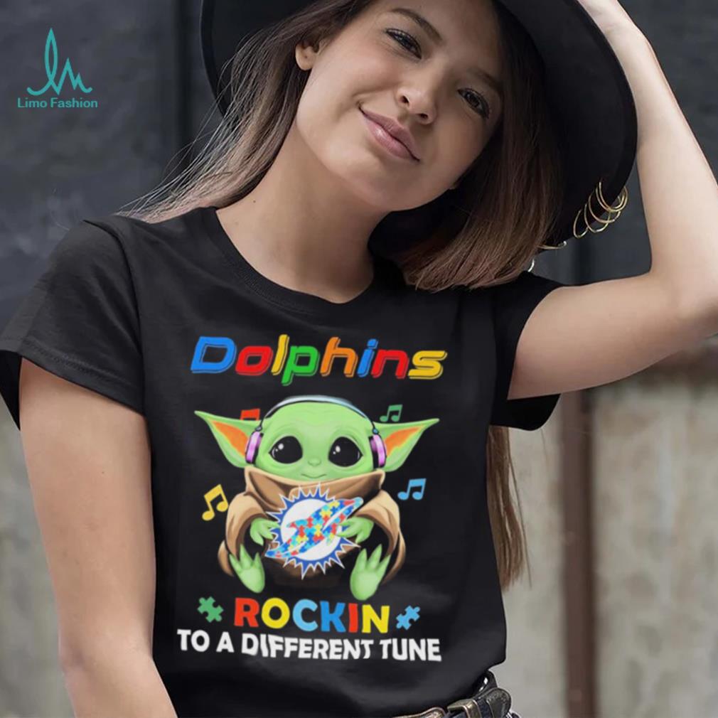 (Autism Miami Dolphins Baby Yoda Rockin To A Different Tune Shirt, guys shirt)