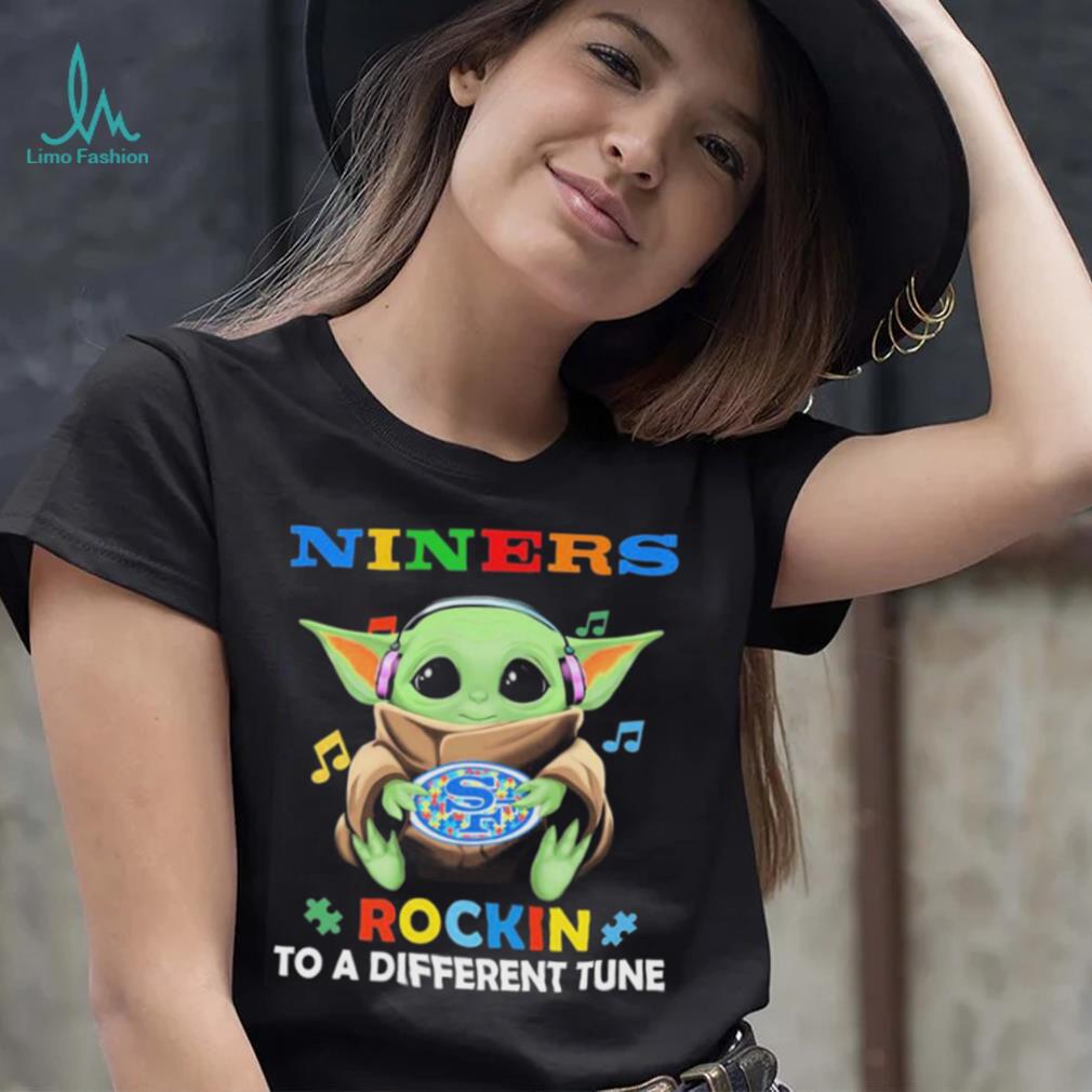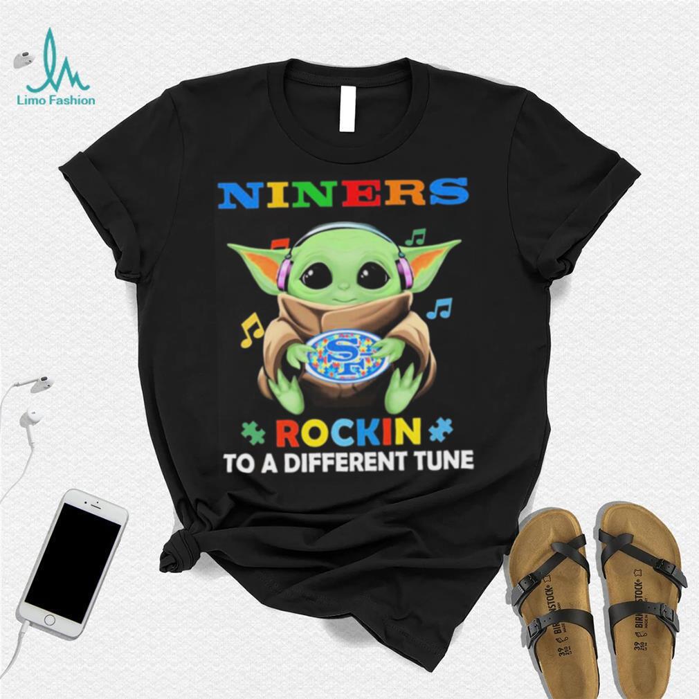 My grandfather was fond of Autism San Francisco 49ers Baby Yoda Rockin To A Different Tune Shirt. When diabetes affected his legs and made him immobile, he continued to whistle. When glaucoma affected his eyes and he lost his eyesight, he continued to whistle. As someone in her early 20s, I found my granddad’s immense pleasure from life overwhelming and infectious. Here was a person who was losing all his senses, yet was gracious enough to utilize and maximize his happiness from the senses he still retained. Try whistling. It improves your lung capacity and will send more oxygen into your bloodstream, making you feel better instantly.Try cooking. I hear it is quite therapeutic when used to counter depression. Try duck meat (if you eat non-veg). If you have trouble sleeping, I read that tryptophan (an amino acid in duck meat) puts you to sleep instantly. Alternatives: try honey with milk before sleeping.