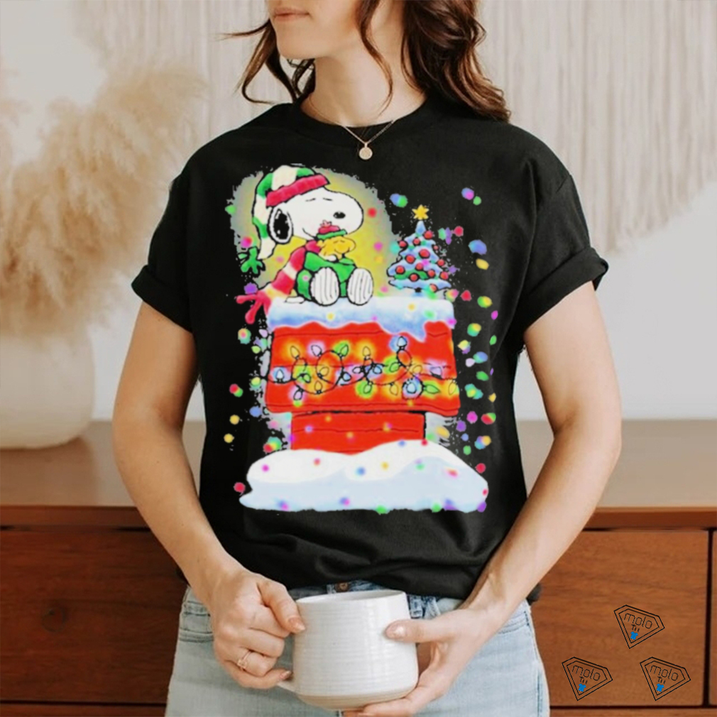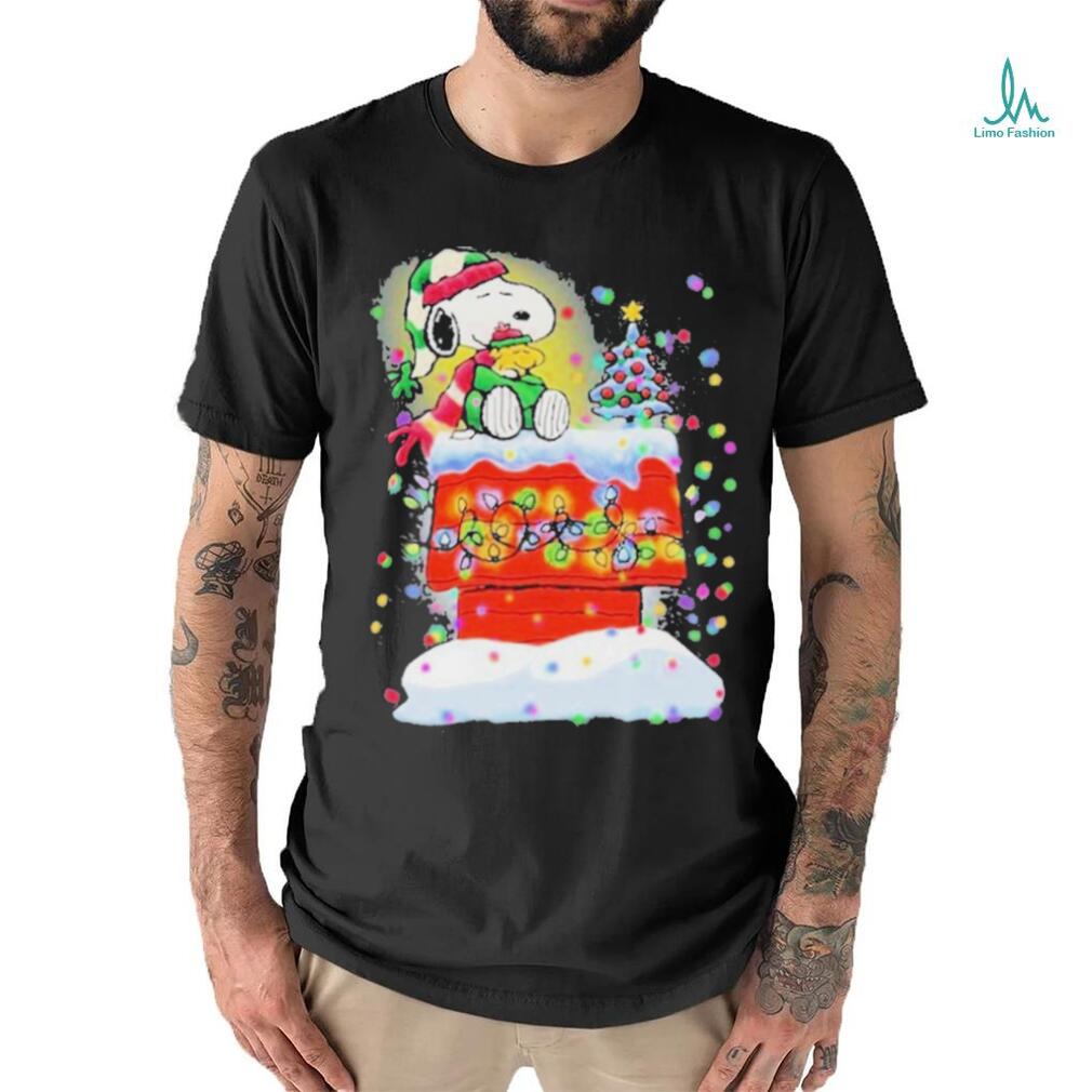 Best Awesome Snoopy And Woodstock Hat Santa Light Tree Christmas T shirt