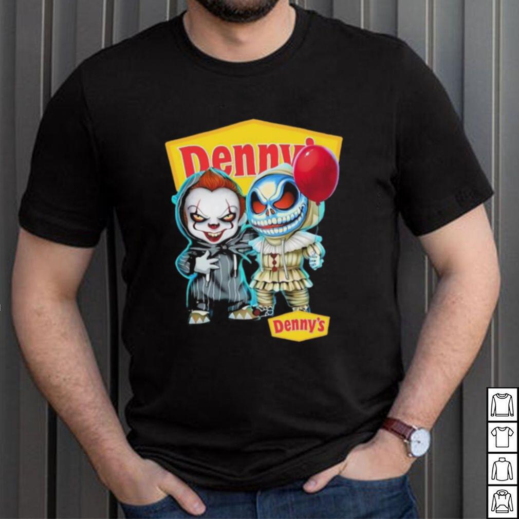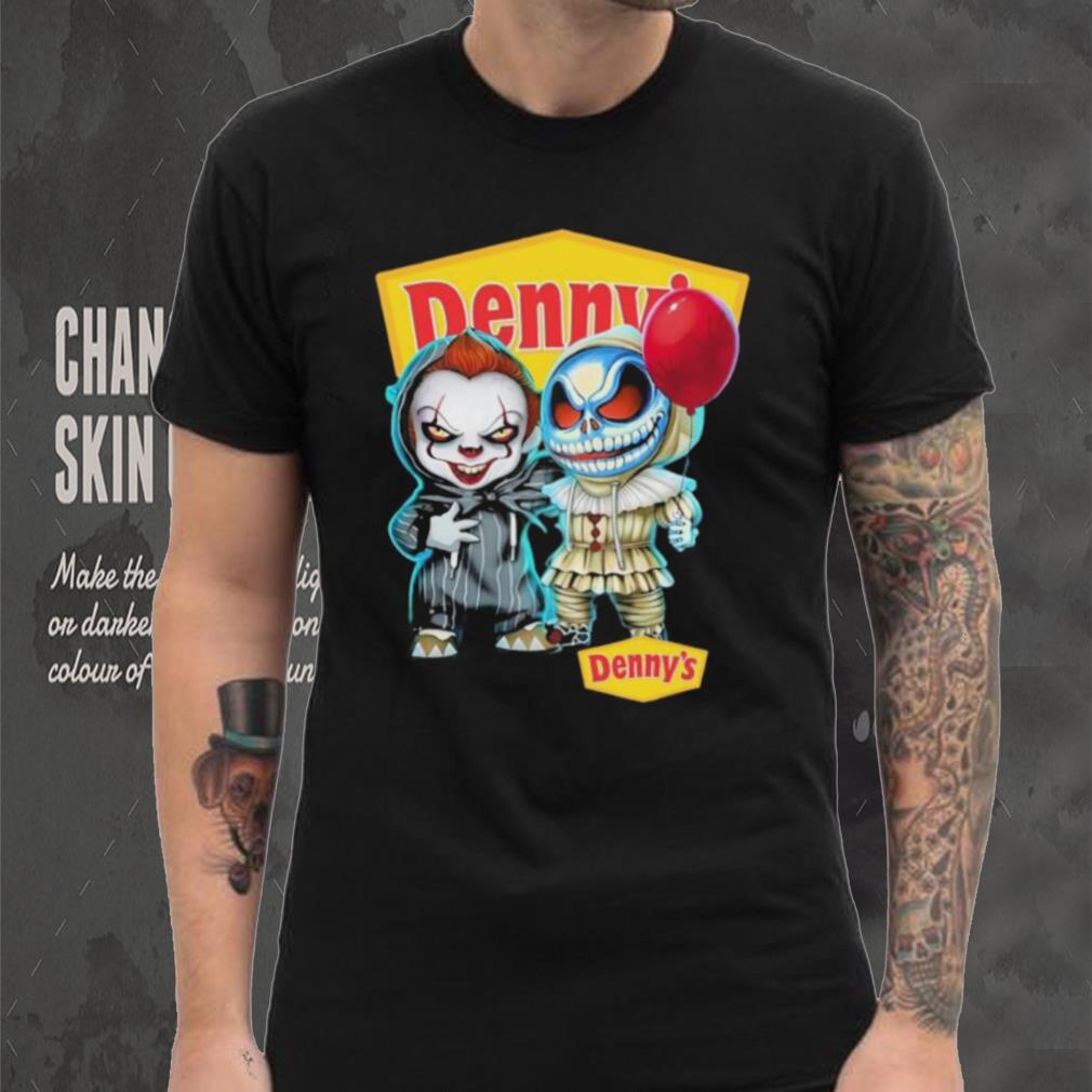 My grandfather was fond of Baby Jack Skellington and Baby Pennywise Denny’s logo 2024 shirt. When diabetes affected his legs and made him immobile, he continued to whistle. When glaucoma affected his eyes and he lost his eyesight, he continued to whistle. As someone in her early 20s, I found my granddad’s immense pleasure from life overwhelming and infectious. Here was a person who was losing all his senses, yet was gracious enough to utilize and maximize his happiness from the senses he still retained. Try whistling. It improves your lung capacity and will send more oxygen into your bloodstream, making you feel better instantly.Try cooking. I hear it is quite therapeutic when used to counter depression. Try duck meat (if you eat non-veg). If you have trouble sleeping, I read that tryptophan (an amino acid in duck meat) puts you to sleep instantly. Alternatives: try honey with milk before sleeping.