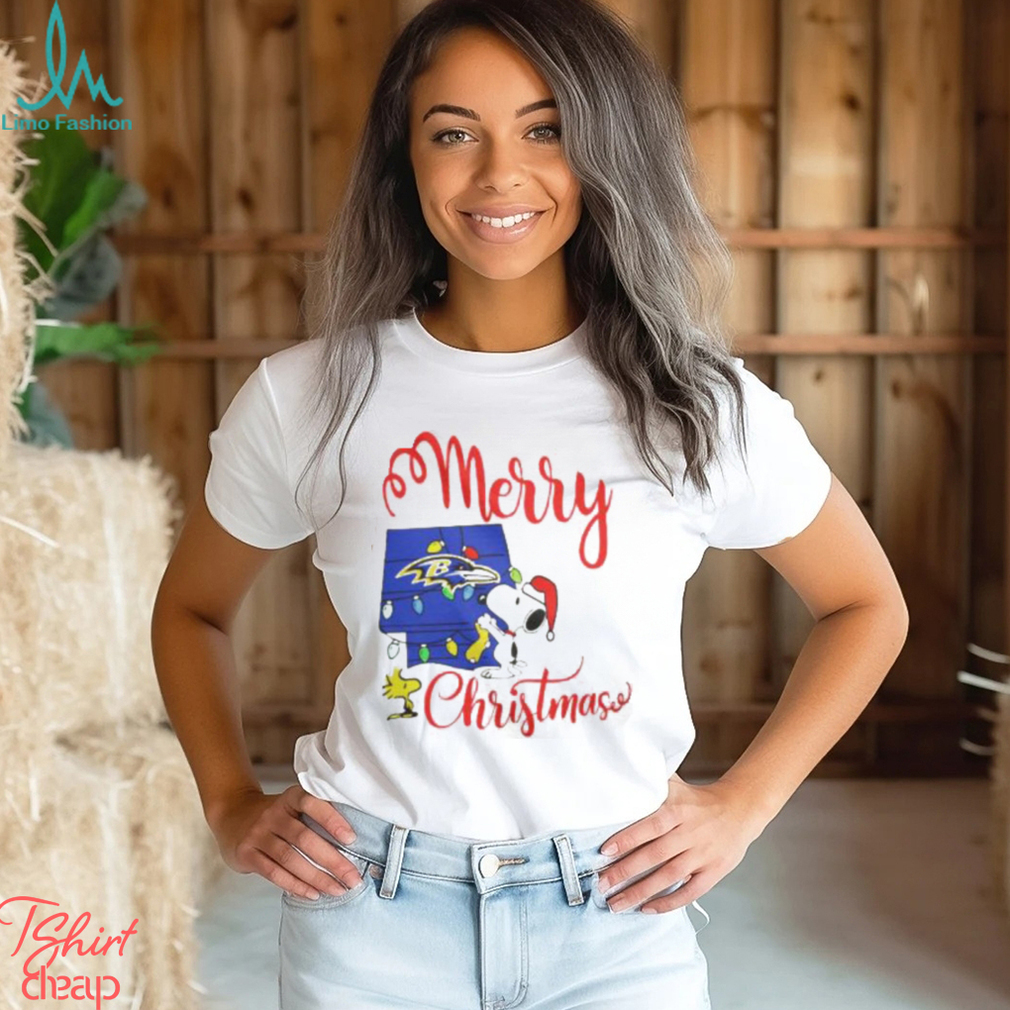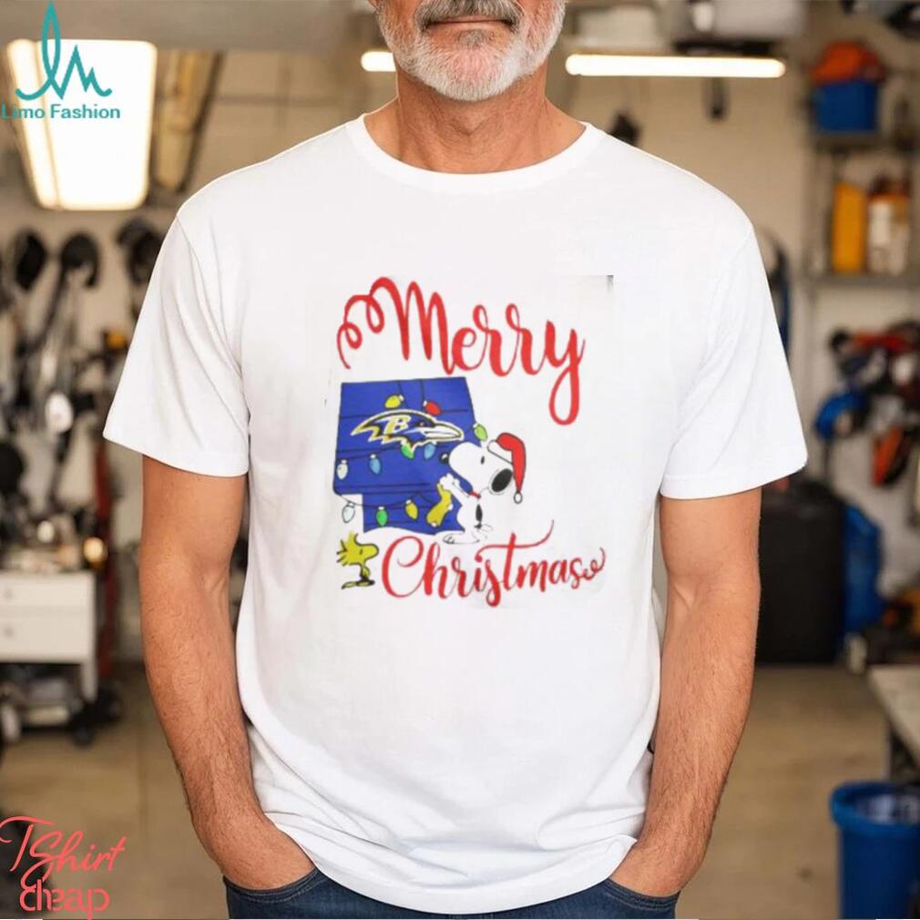 Baltimore Ravens Snoopy And Woodstock Merry Christmas Shirt