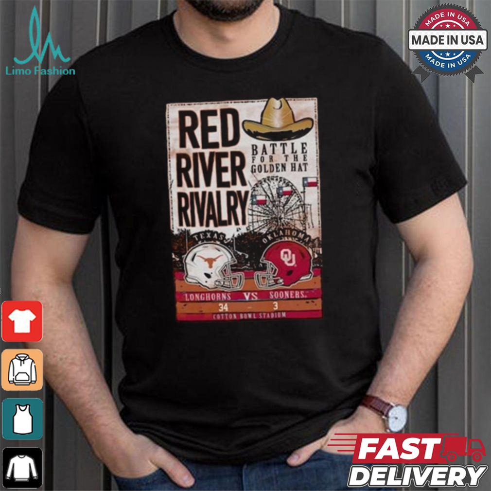 Battle For The Golden Hat Texas Longhorns Vs Oklahoma Sooners 2024 Red River Rivalry Score T Shirt