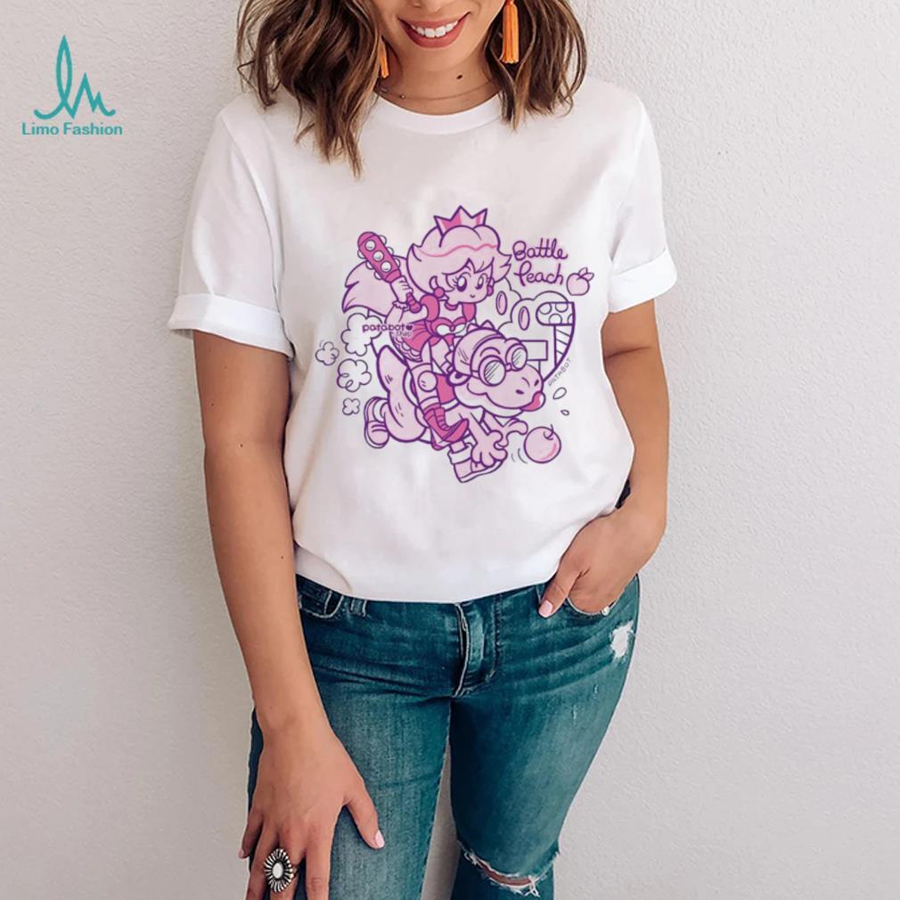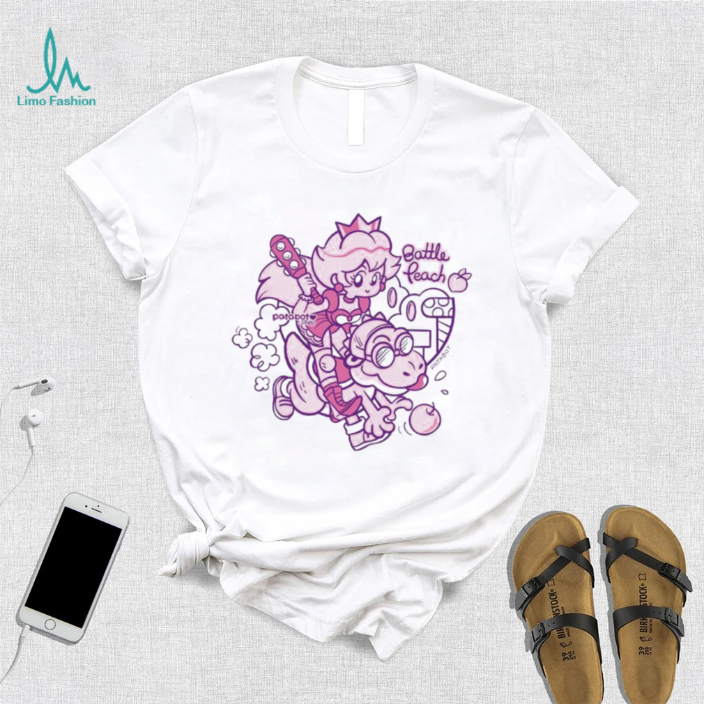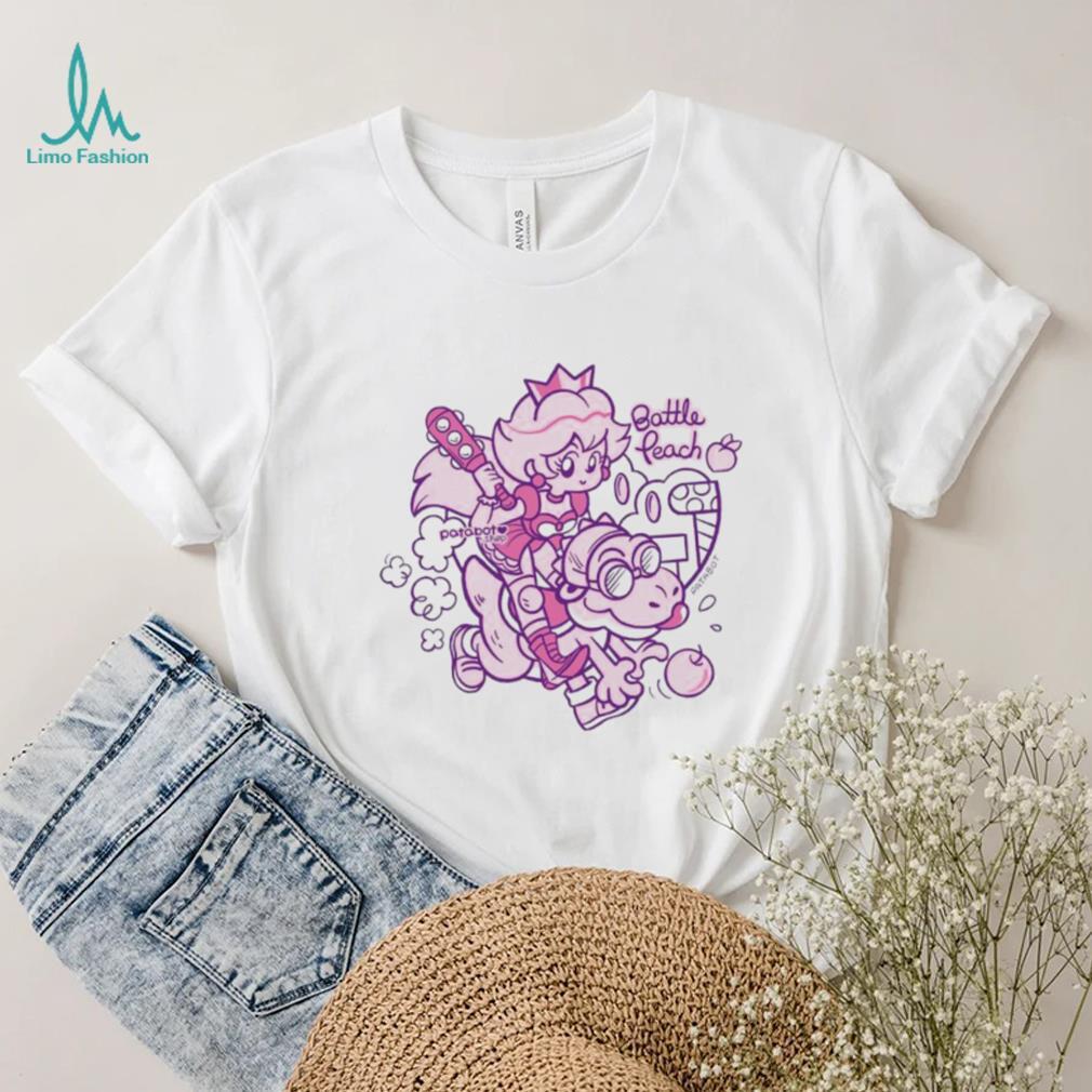 It’s a Battle Peach Alligator Wani Shirt kid’s movie that adults can enjoy. The only bad language is done in a cutesy way, with unintelligible sounds, kind of like the adults always talked in Peanuts cartoons. Ralph gets his mouth washed out with soap for it. The only violence is a scene where Ralph, while being picked on by a bully, snaps and fights back. It isn’t overly violent, and it isn’t glorified fighting, it’s just a couple of kids fighting in the snow like kids do. Ralph is crying throughout, so it is not some kind of ‘Aha, the victim has turned the tables with violence!’ I think the only other scene of violence is where Ralph fantasizes that he defends the house from burglars in the backyard with a BB gun. The scene is in black and white and sped up like a funny silent movie, and the burglars wear comical, old timey burglar outfits – striped shirt and black masks, like the Hamburglar. I think Ralphie shoots them in the butt as they try to climb back over the fence to get away.