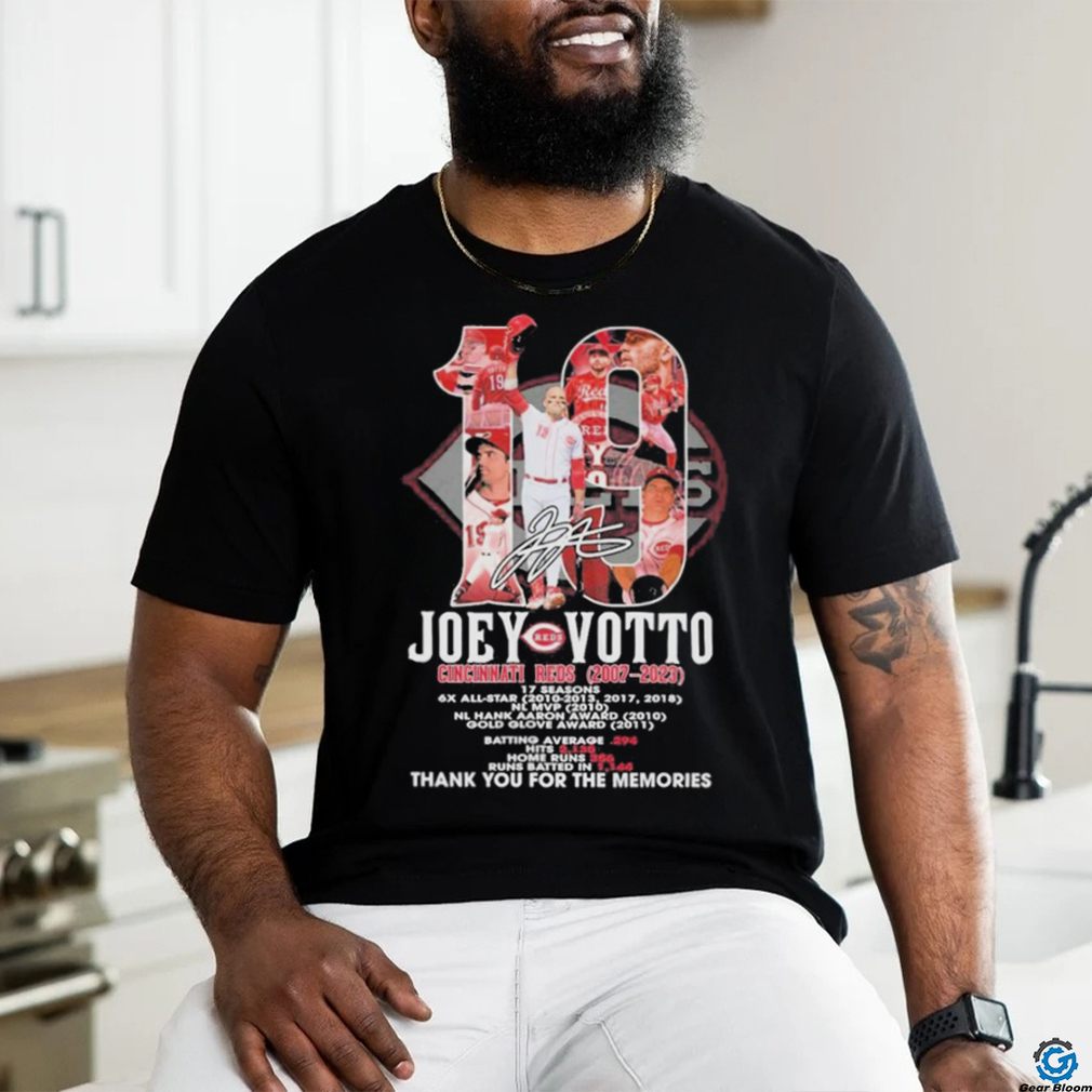 On most weekends I head off into the woods or go fishing. For a Best Cincinnati reds Joey votto 2007 2023 thank you for the memories shirt as densely populated as New Jersey, we have done a good job of protecting wide swaths of forests and swamps. Cool areas to explore. There are many rugged and beautiful hiking trails. My out of state friends who have visited and hiked with me repeat over and over “I can’t believe this is New Jersey”. They have visions of the NJ Turnpike corridor with refineries, warehouses and factories, etc. and the idea that there are wild, beautiful and rugged areas in New Jersey surprises them . The fishing can be incredible, whether bass fishing on lakes, or trout fishing on streams. There are backcountry streams where you can still find native strain wild trout. I can go out for breakfast and have real bagels. Not what most of the country thinks are bagels. They are not simply round bread with a hole in it. We get the chewy, dense and delicious concoctions which are hard to find out of the NJ/NYC area.