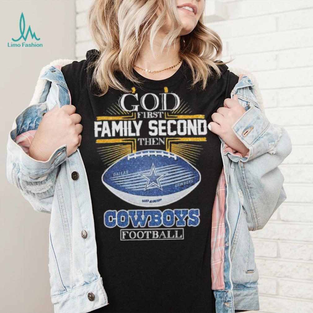 The first thing you need to do to prepare is contact all of your suppliers to learn their plans for the Best dallas Cowboys god first family second then Dallas Cowboys football 2024 shirt. It’s entirely possible they’ll list this important information on their websites or send it out in a blast email, but don’t rely on this. Take control of your store and get this important information yourself. Make a master document that contains all of your suppliers, when they’re planning on shutting down, for how long, and to what degree. You’ll find that some suppliers are only shutting down for a week and will still be contactable for questions. Others though may be closed for an entire month and truly shut down, meaning impossible to contact (though this is rare). It’s important to understand the holiday policies of all of your suppliers so that you can effectively manage your offerings and customer expectations during the weeks surrounding the holiday. When seeking this information, remember the likely communications delays you’ll face and make sure you start this process as early as possible. You want to give your suppliers ample time to get back to you.