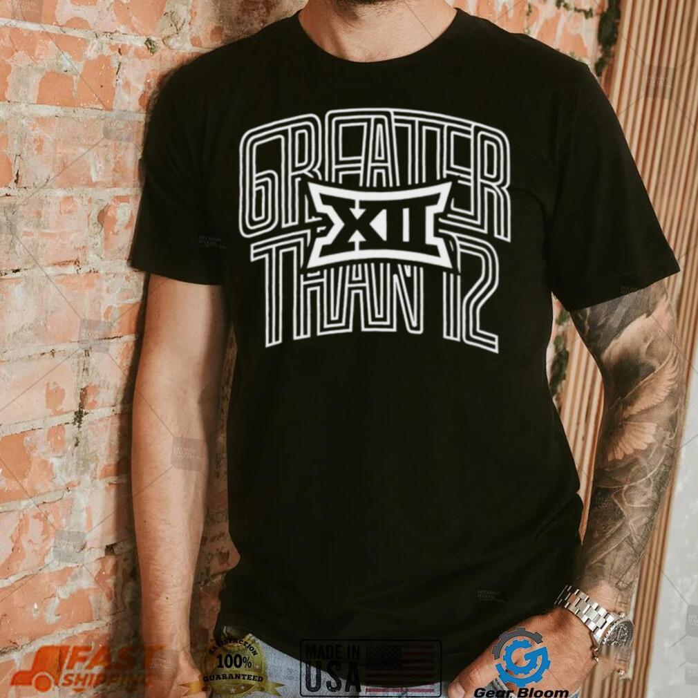 Its increasingly harder to get the NFL to commit to what a CATCH actually is (a TD in Chicago can be called a non catch in Seattle, even though the same exact type of Big 12 greater than 12 logo shirt catch was made). The main reason for this, the NFL does not hire FULL TIME officials. These are men (and now women) with other jobs that while they are fully trained, do not do this full time as their main work. Further more, NFL officials work together as teams during the regular season. The Playoffs for Referees is just like for the rest of the NFL..the best of the best get to join in. That means you have Line Judges from one team mixed with Referees from another team, because those two people graded the highest during the season, and their reward is.. to ref the playoffs…and Super Bowl. A lot can be said about team chemistry, and how well a Big 12 greater than 12 logo shirt team works together. Well keep that in the Officiating too please NFL. Pick the best TEAMS and keep them together in the NFL.