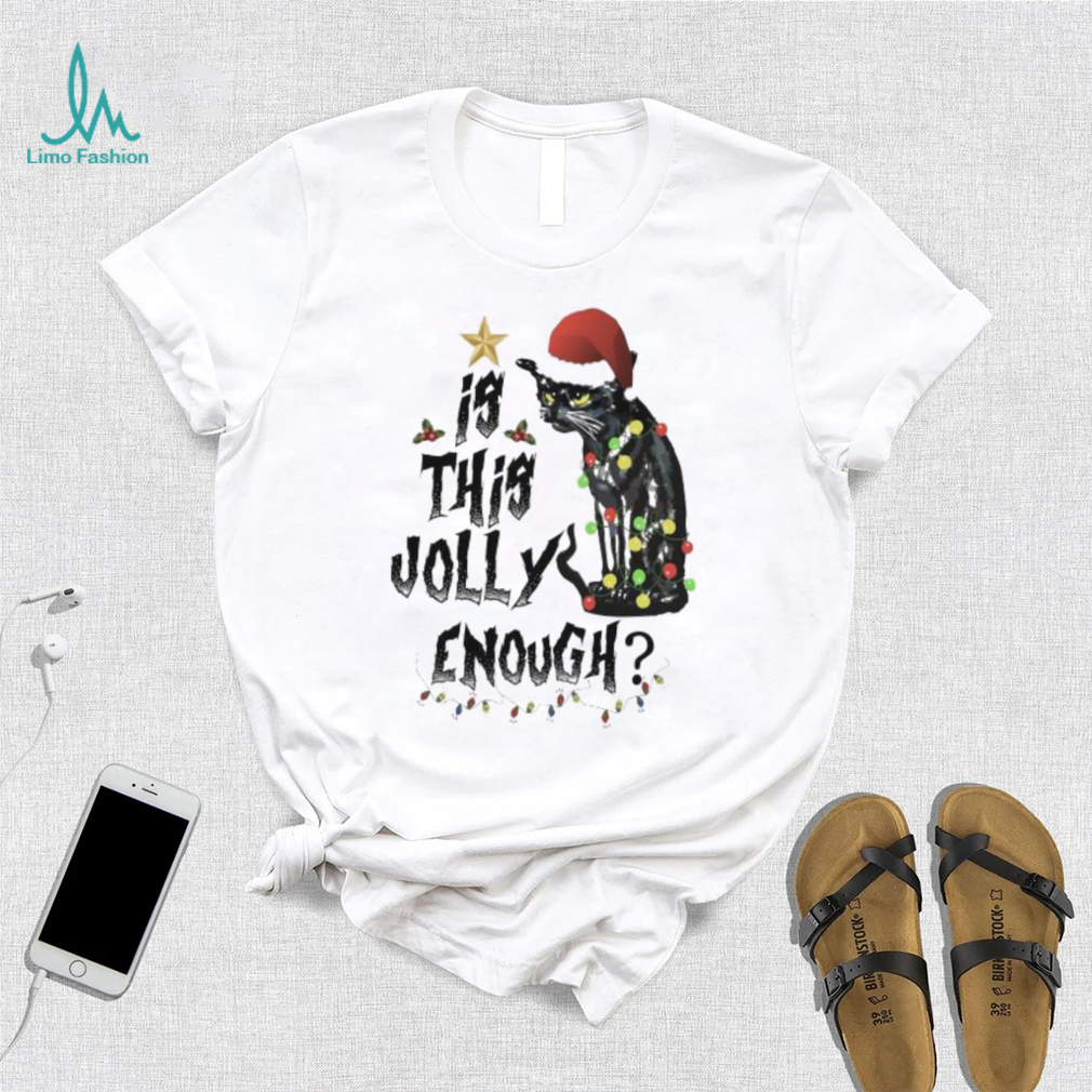 Do it because it sucks putting up Christmas decorations. It sucks putting up the tree, untangling all the lights, getting all that crap out of Black Cat Christmas Is This Jolly Enough Shirt storage and tossing around with meaningless baubles like each placement is life-or-death perfectionist fun. And we want to get the most out of that effort. Depending on how many “helpers” I have, it can take one to four hours just putting up the tree. (It’s frealistic, over two metres tall, and has individual coded branches.) The more helpers, the longer it takes. And it’s hot where we live. By the end I’m peed off, drenched, covered in sweat, and I haven’t even done the lights yet. Which are tangled to f*&#. Then the kids pull out all the decorations and place them random patchy over the lower sections of the tree, despite encouragement to maybe spread them around (and make it look goodish). So I wait for them to go to school the next day and redo all the decorations. It’s basically a couple days work for all the Chrissy dex.