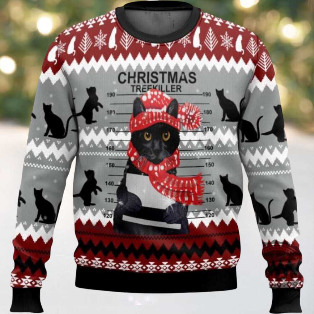 Black Cat Christmas Tree Killer Ugly Christmas Sweater