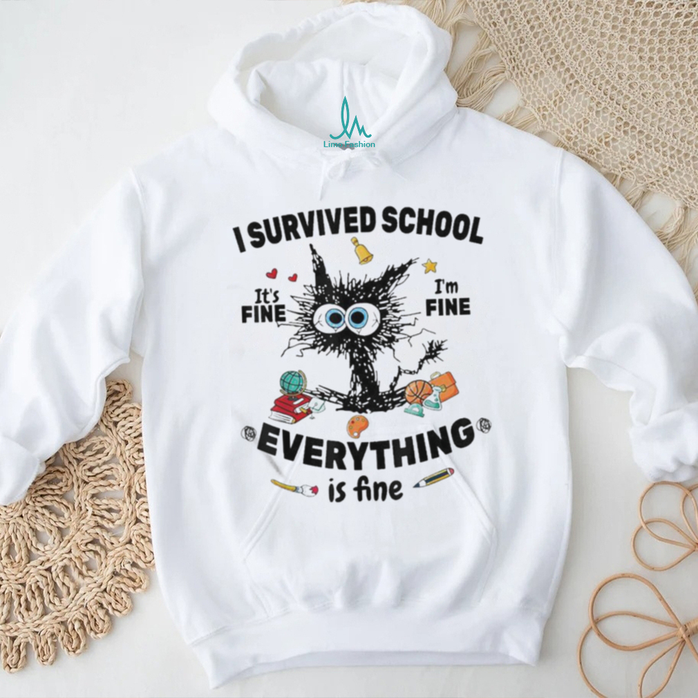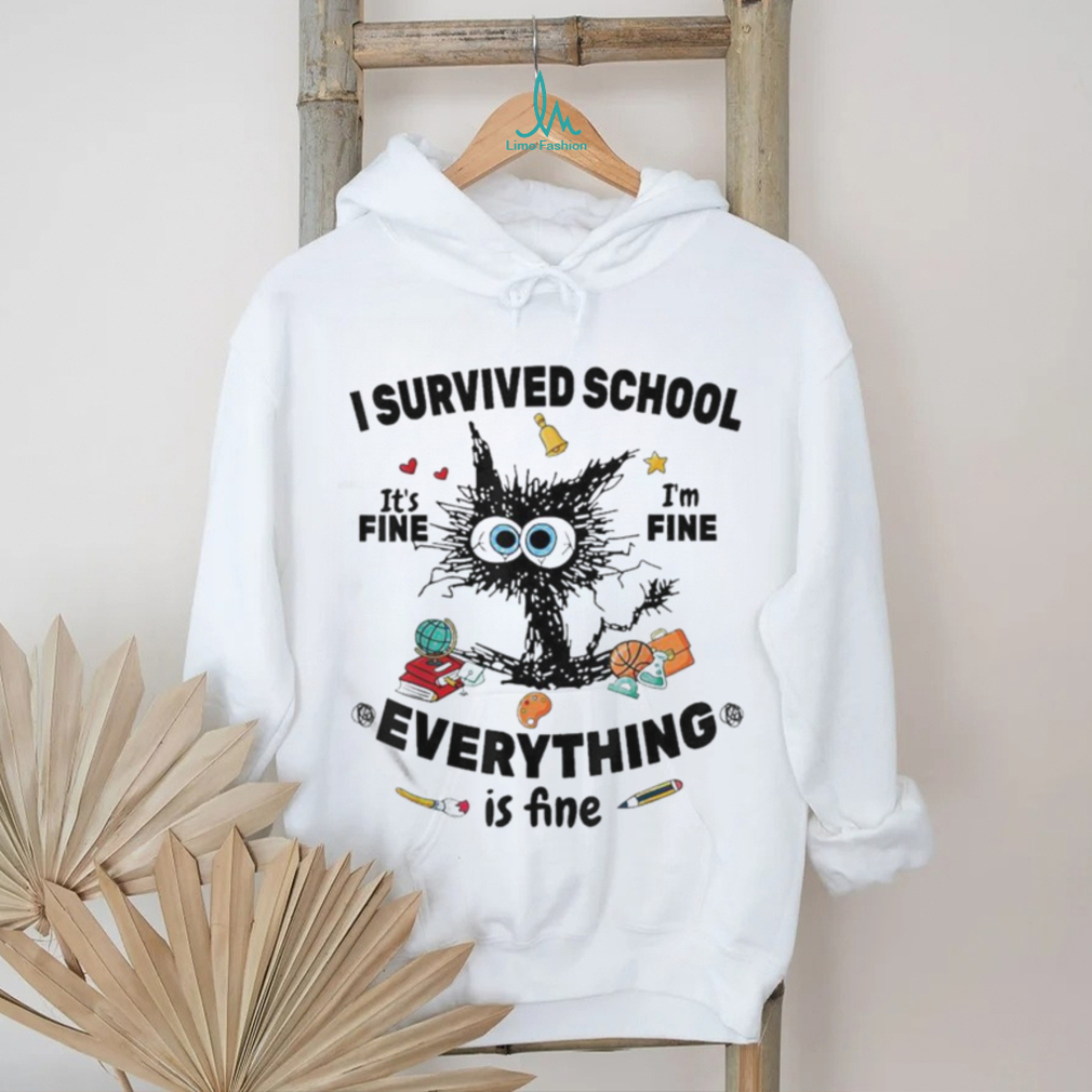 Black Cat I Survived School It’s Fine Everything Is Fine Shirt, Hoodie, Sweater, Vneck, Unisex and T-shirt