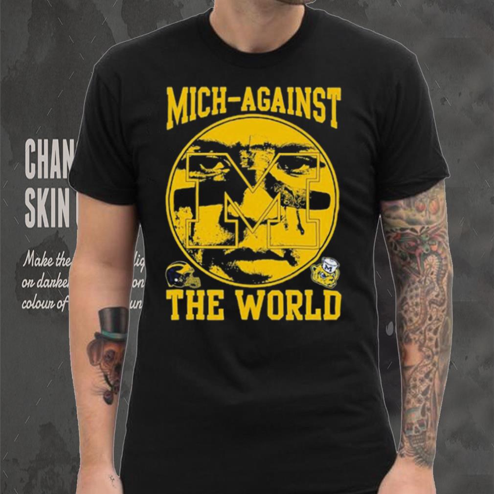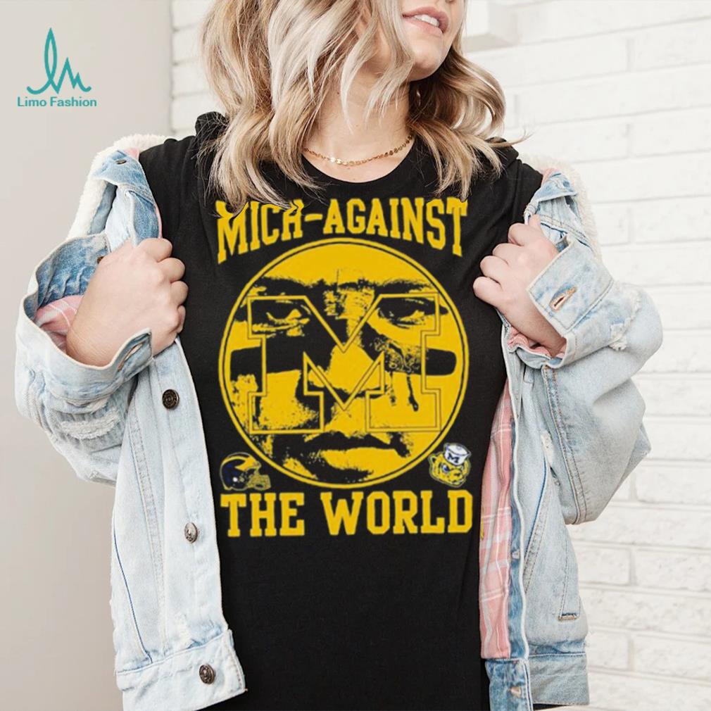 Selected with the no.1 overall pick by the Atlanta Falcons in the 2001 NFL Draft, Vick was a part time starter in his rookie season before winning the starting job in 2002. Vick was the first black QB selected with the no.1 overall pick and his impact was immediate. A dual threat QB, Vick revolutionized the way the QB position is played in the NFL. An adept passer with a strong arm, he could make all the Blake Corum Michigan Wolverines Mich Against The World Shirt throws but was known more for his ability as a runner. He quickly became one of the most popular players in the league and his star began to soar.