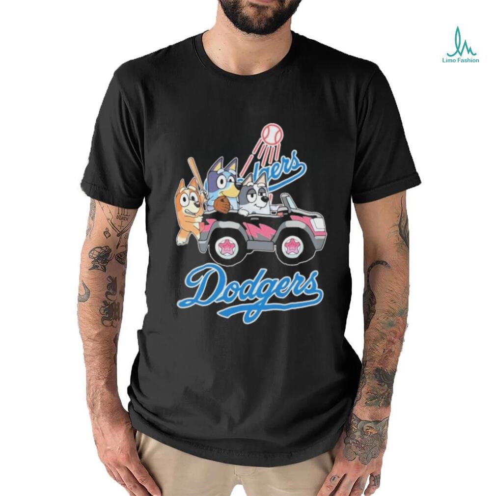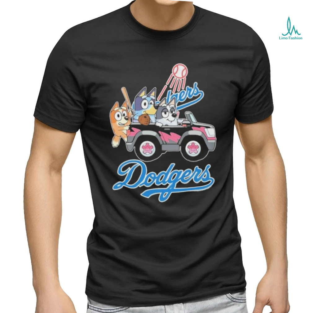 ()Bluey Characters Driving Car Los Angeles Dodgers shirt, Hoodie, Sweater, Vneck, Unisex and T-shirt