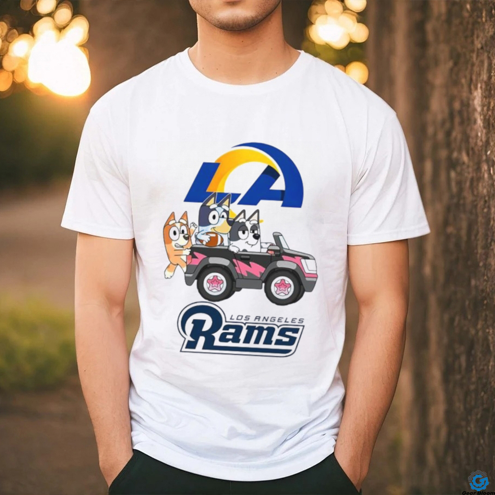 ()Bluey fun in the car with Los Angeles Rams football shirt, Hoodie, Sweater, Vneck, Unisex and T-shirt