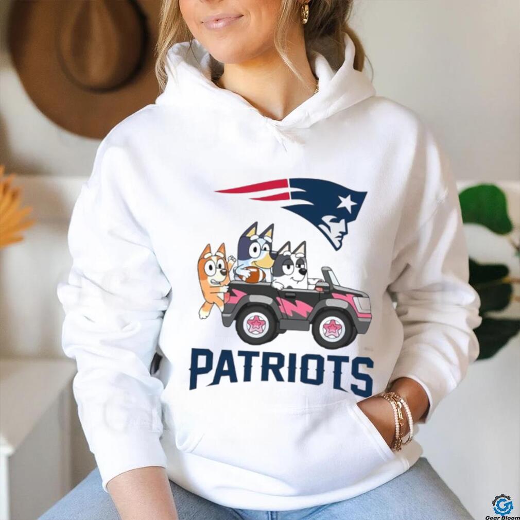 ()Bluey fun in the car with New England Patriots football shirt, Hoodie, Sweater, Vneck, Unisex and T-shirt