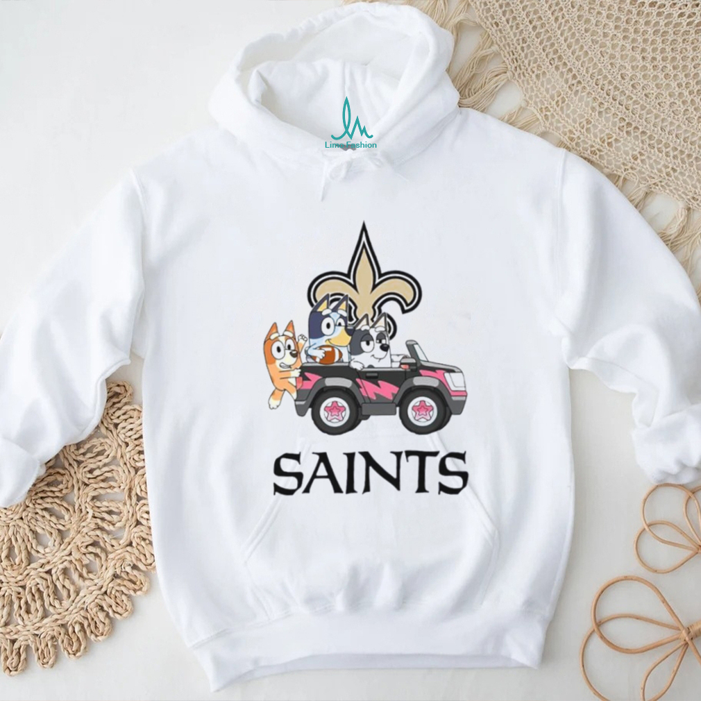 ()Bluey fun in the car with New Orleans Saints football shirt, Hoodie, Sweater, Vneck, Unisex and T-shirt
