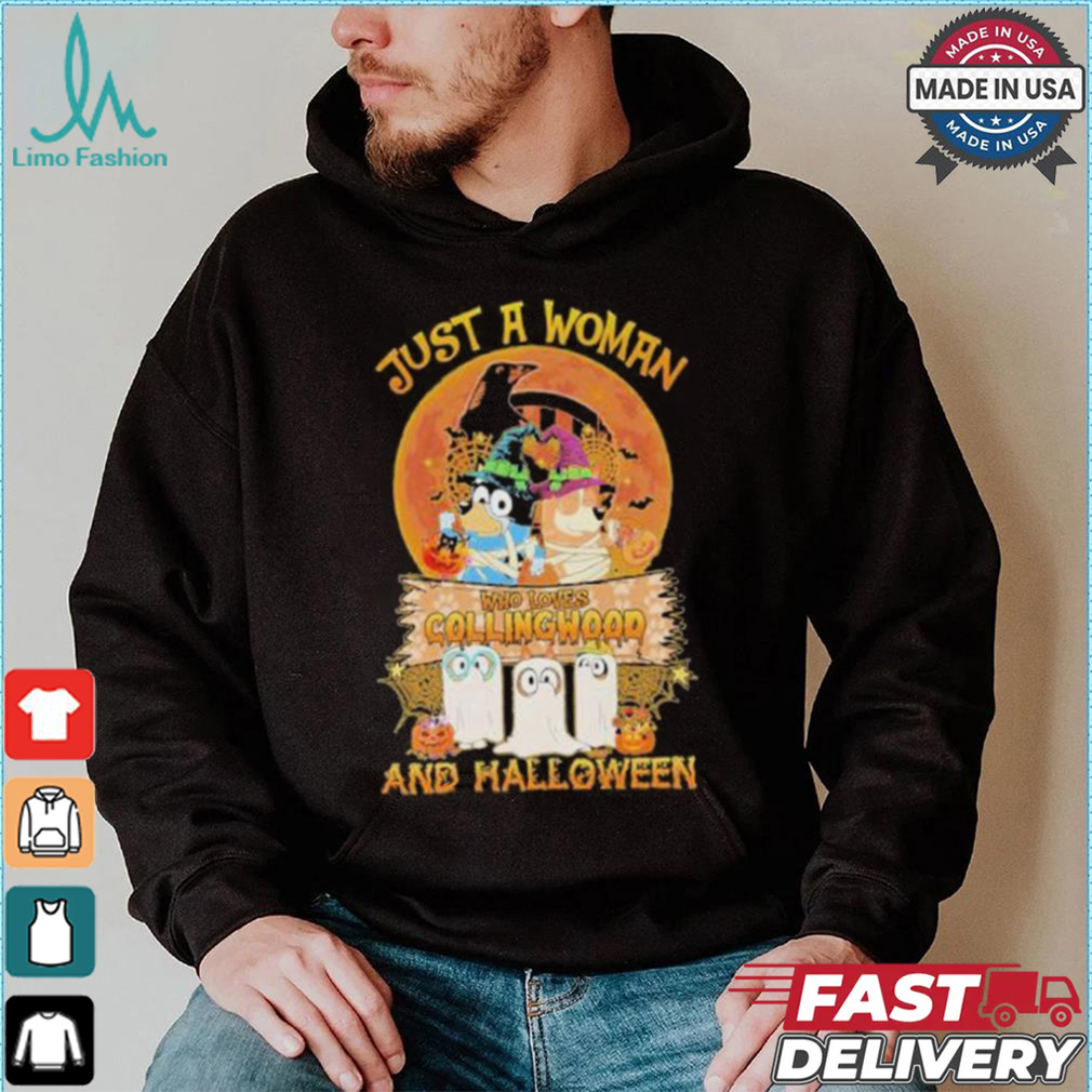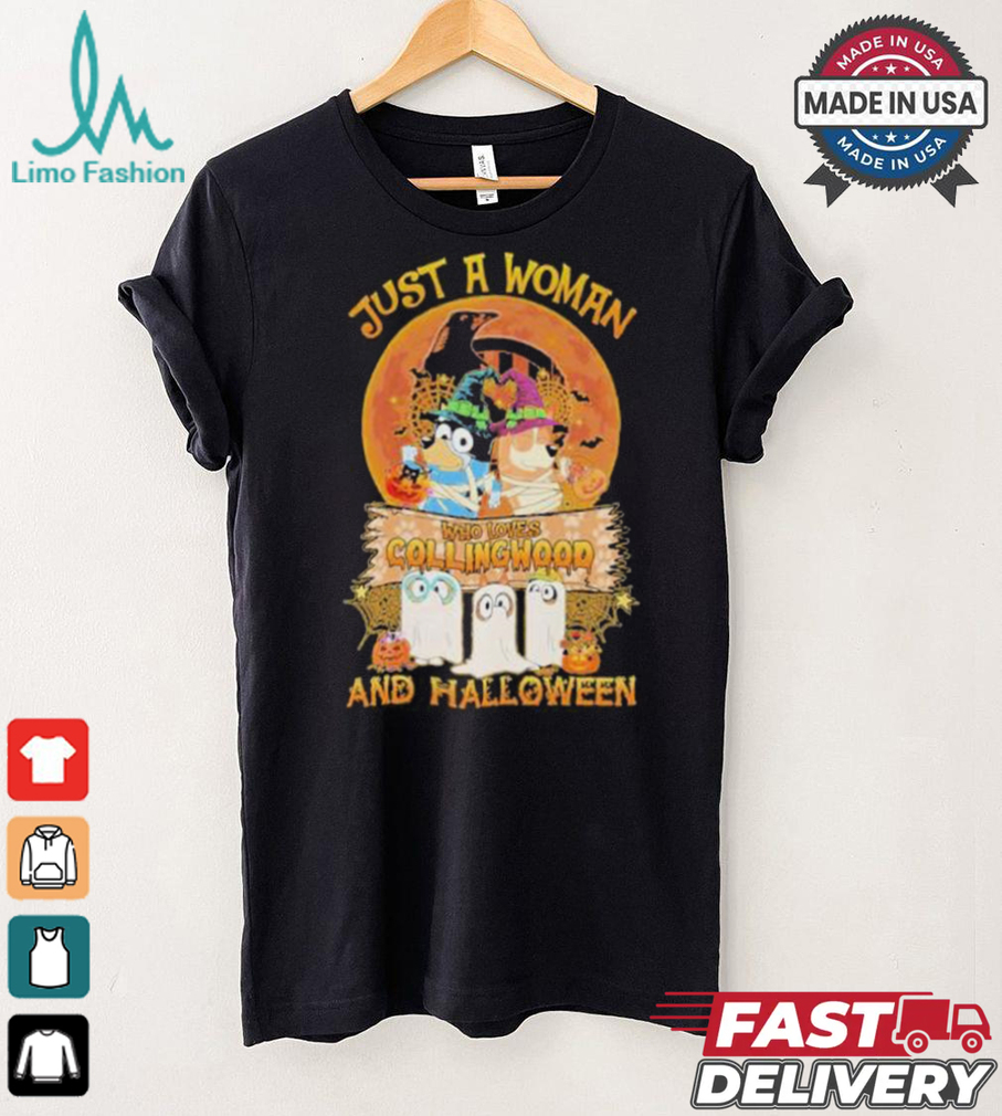 Bluey Just A Woman Who Loves Collingwood Magpies And Halloween Shirt