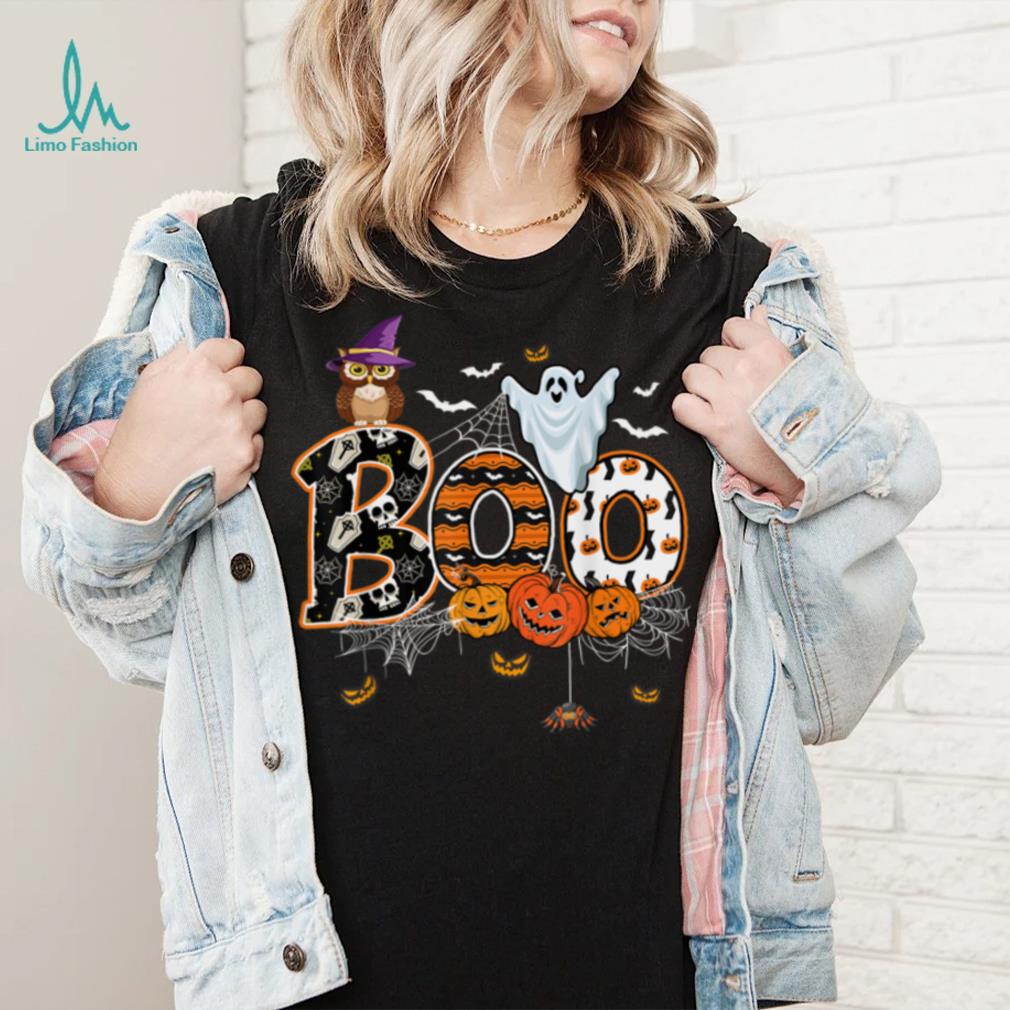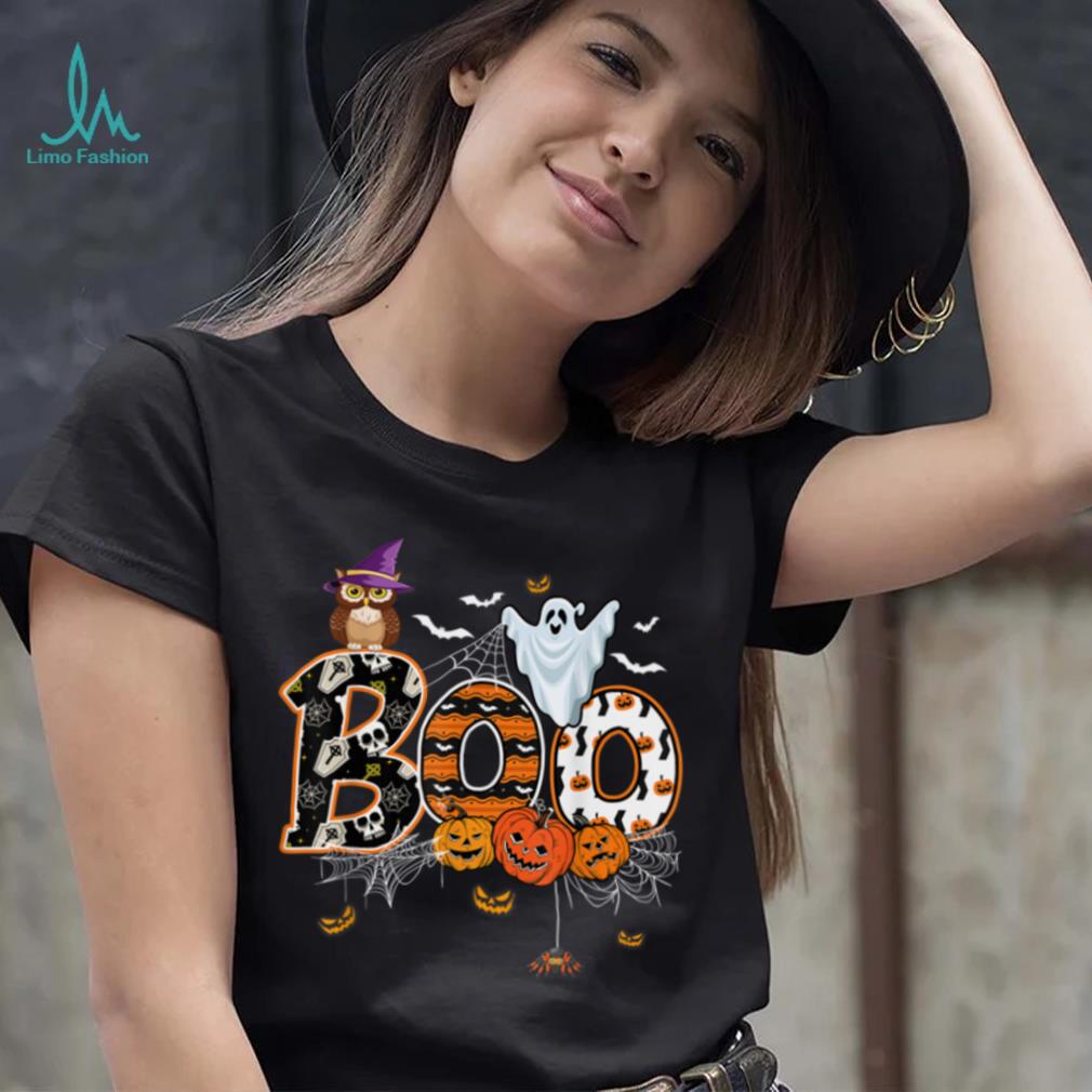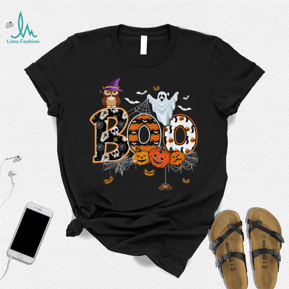 Boo Creepy Owl Pumpkin Ghost Funny Halloween Costume T Shirt