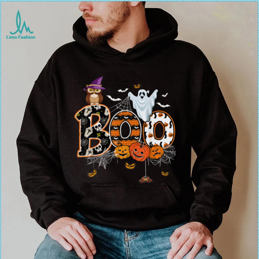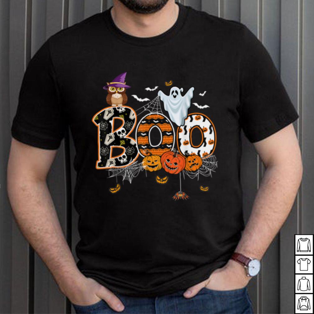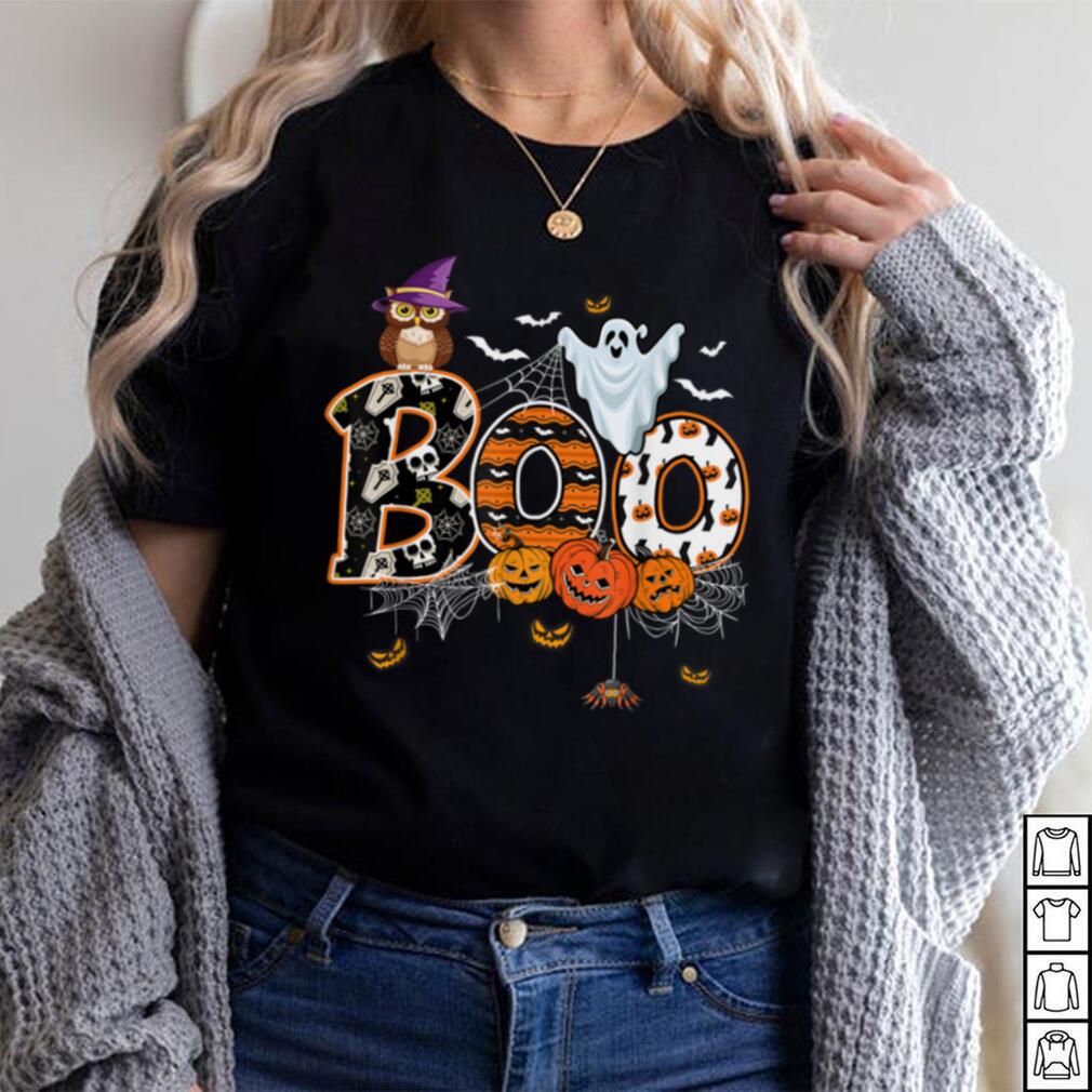 Boo Creepy Owl Pumpkin Ghost Funny Halloween Costume T Shirt